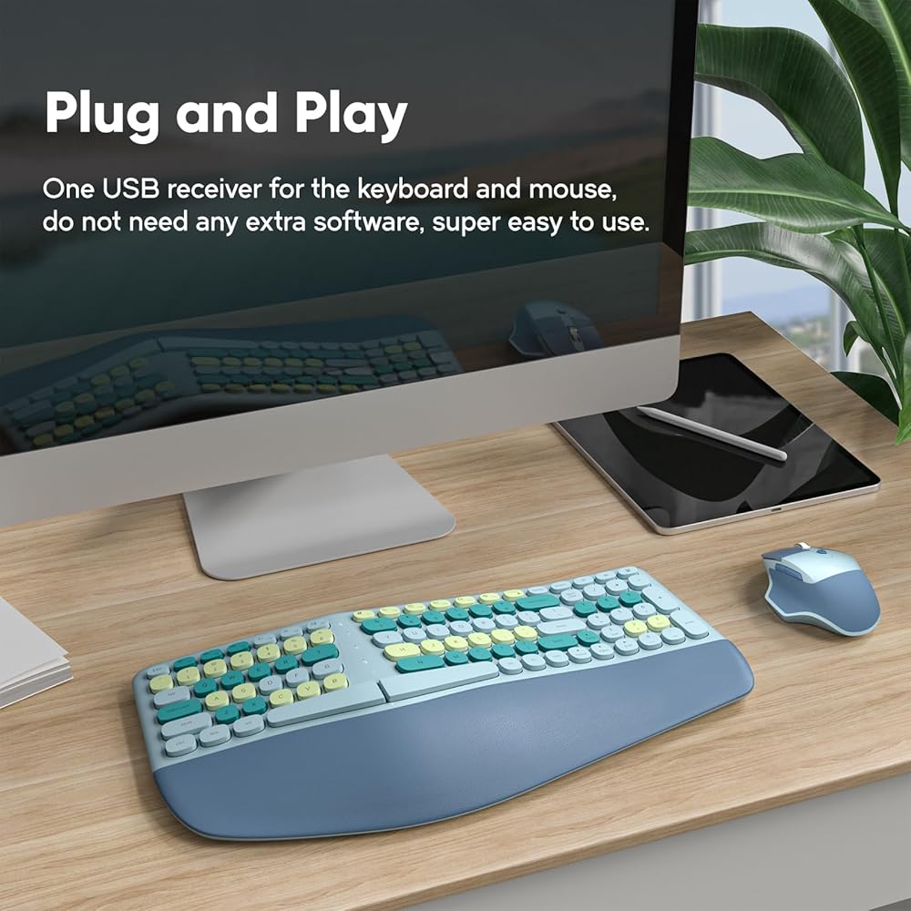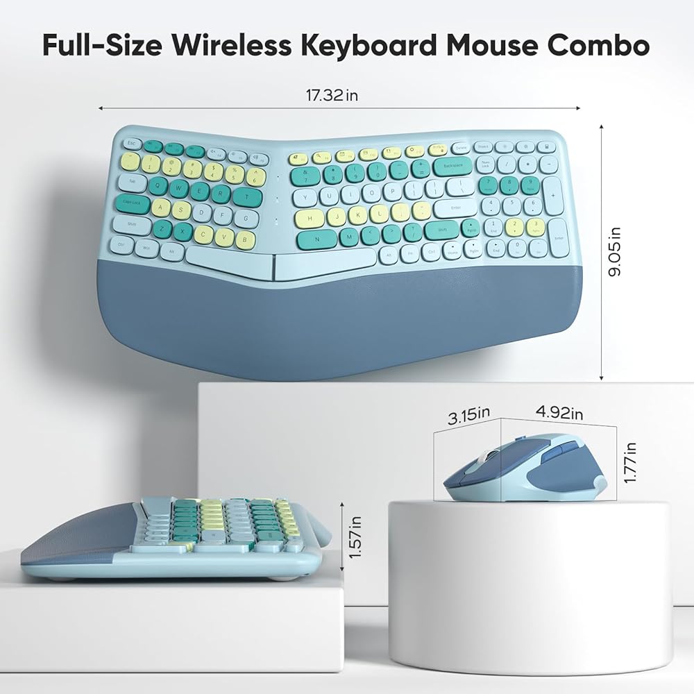 【ابحث عن اللون الخاص بك】مظهر لوحة المفاتيح والماوس اللاسلكي بتصميم ملون فريد، لإنشاء سطح مكتب كمبيوتر جمالي، وإضافة إحساس بالجو في بيئة العمل، وإضفاء طابع مزاجي جيد، يمكنك تقديمه كهدية لأي شخص!