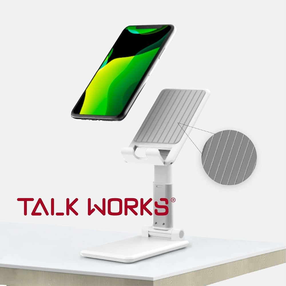يتميز حامل الهاتف الخلوي للمكتب بقاعدة مبطنة مقاومة للخدش مصممة للحفاظ على هاتفك ثابتًا في مكان واحد. إكسسوار عملي للمنزل أو المكتب، حامل الهاتف المكتبي الأبيض TALK WORKS يدعم الشحن عن طريق تشغيل كابل الشحن بالأسفل، ويعمل مع أي حافظة. يتميز حامل الهاتف بلوحة مضادة للانزلاق، وهو مثالي لـ Facetiming، والتحقق من التنبيهات والإشعارات، والقراءة، ومشاهدة مقاطع الفيديو، أو ببساطة لطاولة جانبية أكثر تنظيماً. يتميز حامل الهاتف الخلوي هذا بارتفاع وزاوية وأوضاع قاعدة قابلة للتعديل، بالإضافة إلى ذراع قابل للتمديد ليناسب تفضيلات المشاهدة الخاصة بك. إكسسوار مثالي للهاتف للسفر، حيث يمكن طي حامل الهاتف الخلوي القابل للتعديل بشكل مسطح، مما يجعله مناسبًا تمامًا لجيبك أو حقيبة العمل أو الحقيبة أو محفظتك. تقدم TALK WORKS ملحقات تقنية تجعل الحياة أسهل وأكثر متعة. تشمل منتجاتنا ملحقات شحن الهاتف، وكابلات الشحن، وبنوك الطاقة، وملحقات الألعاب مثل الحافظات، وواقيات الشاشة، وأجهزة التحكم ذات المقبض المريح، وحقائب الحمل، وقواعد شحن Joy-Con، وعجلات القيادة، ومضارب التنس.