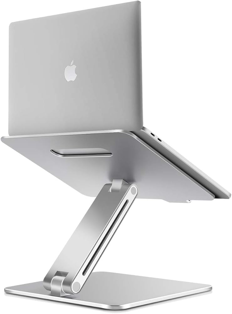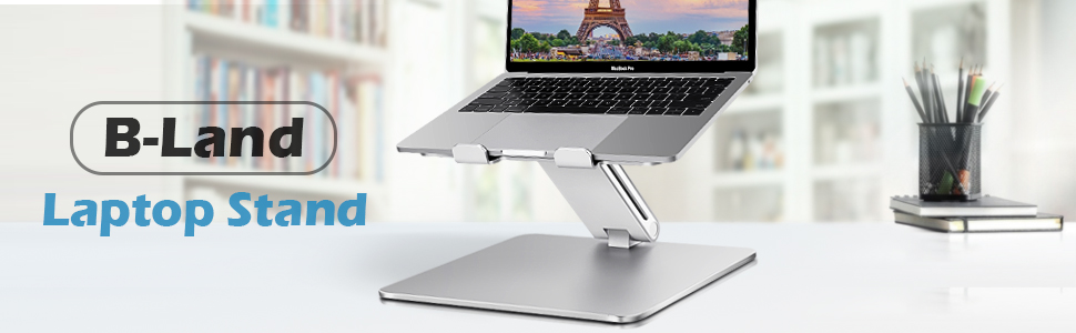 حامل كمبيوتر محمول B-Land، حامل كمبيوتر محمول مريح قابل للتعديل، حامل كمبيوتر محمول من الألومنيوم متوافق مع أجهزة MacBook، Air، Pro، Dell XPS، Samsung، Lenovo، Alienware جميع أجهزة الكمبيوتر المحمولة 10-17 بوصة