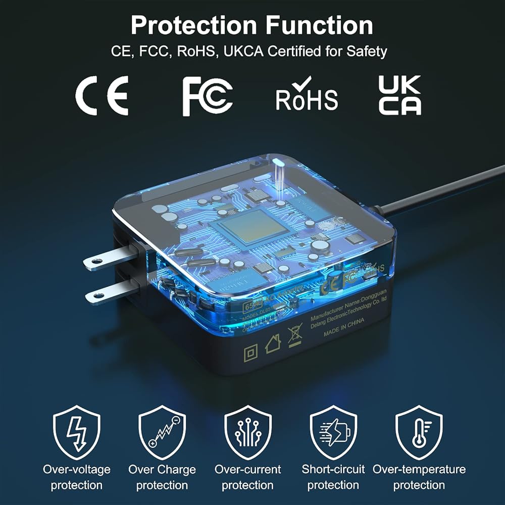 💻【حماية السلامة】: حماية من الدائرة القصيرة، حماية من الشحن الزائد، حماية من درجة الحرارة، شحن سريع. تتوافق مع معايير UL/FCC/CE.