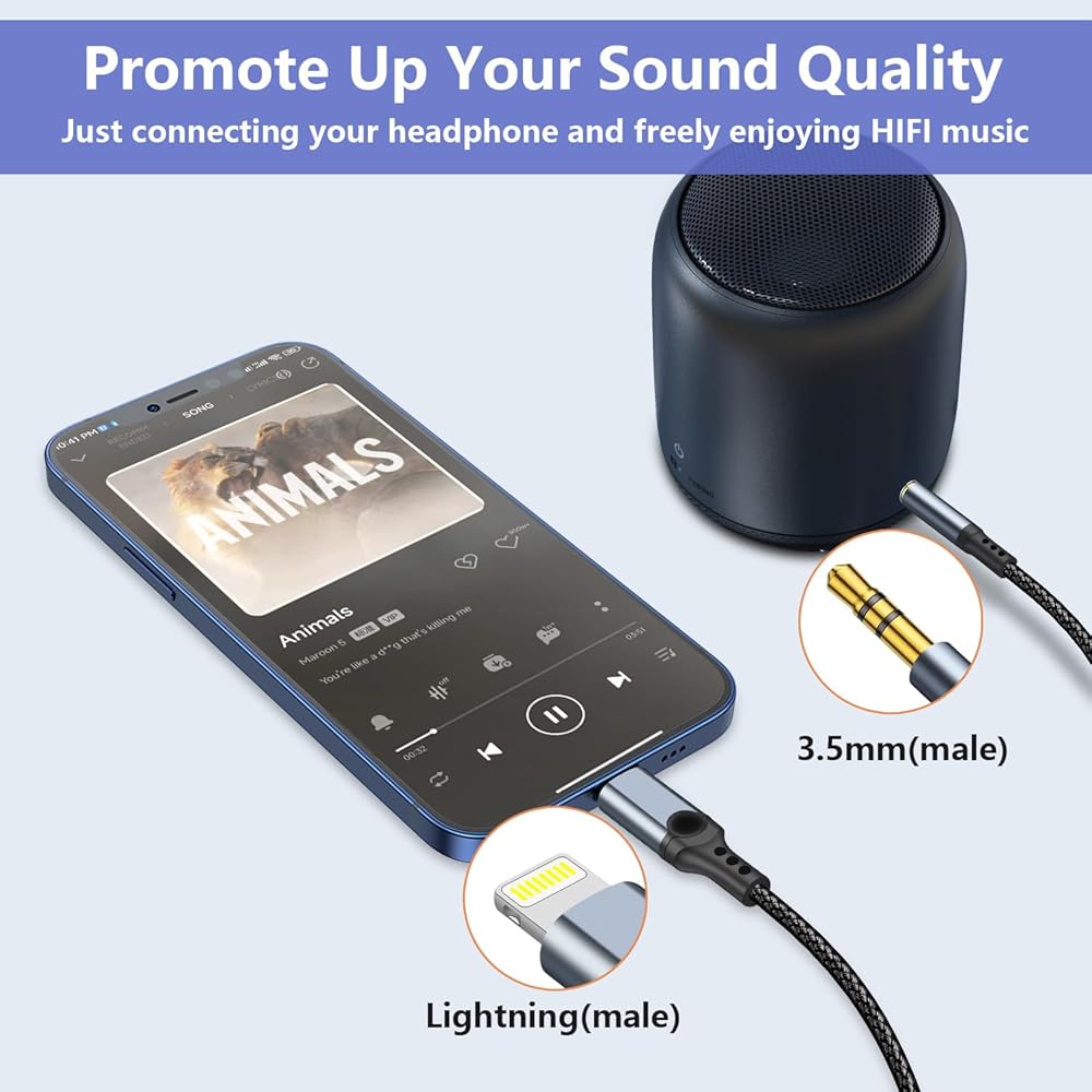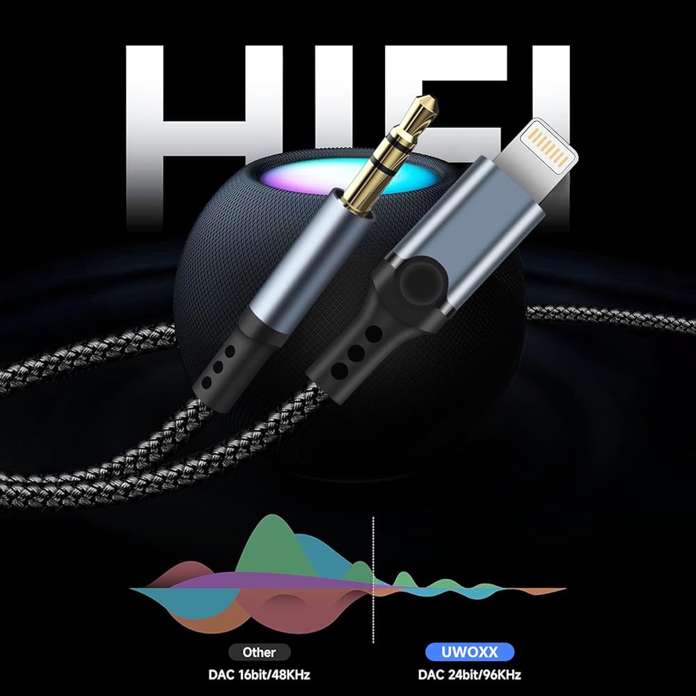• 【Enjoy Hi-Fi Music】This aux to iPhone audio cord made with Nickel-plated connector and built-in powerful DAC chip that delivers optimal signal with lower distortion, providing high fidelity stereo audio output and the cleanest sound experience. Enjoy your fantastic music trip by using this aux cord for iPhone.