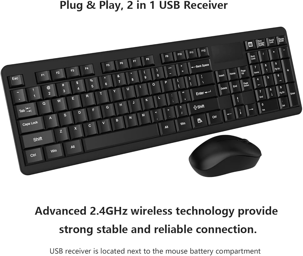 2-in-1 unifying USB receiver: The keyboard and mouse are connected to the same USB receiver