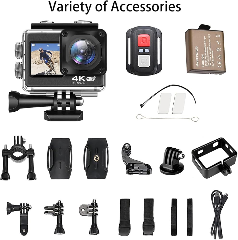 كاميرا 4K 60FPS 20MP EIS Action Camera 30M تحت الماء كاميرا مقاومة للماء كاميرا واي فاي رياضية مع شاشة تعمل باللمس كاميرا فيديو فائقة الدقة بزاوية واسعة 170 درجة مع مجموعة بطاريات وملحقات قابلة لإعادة الشحن عن بعد