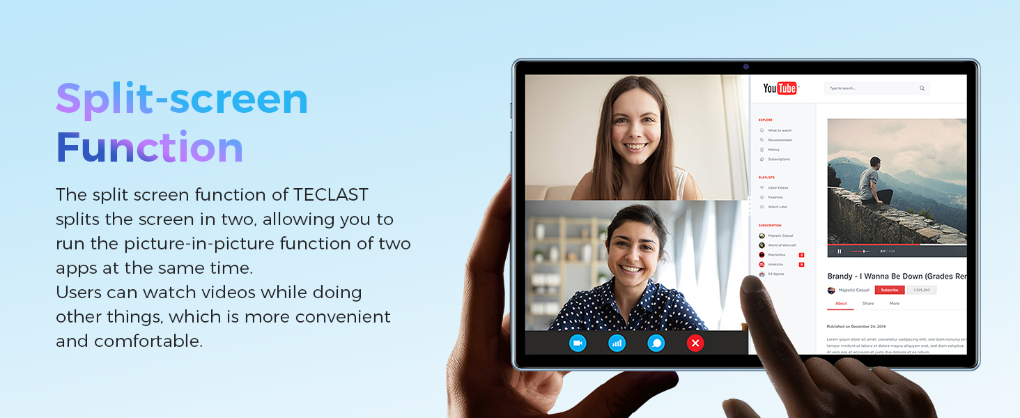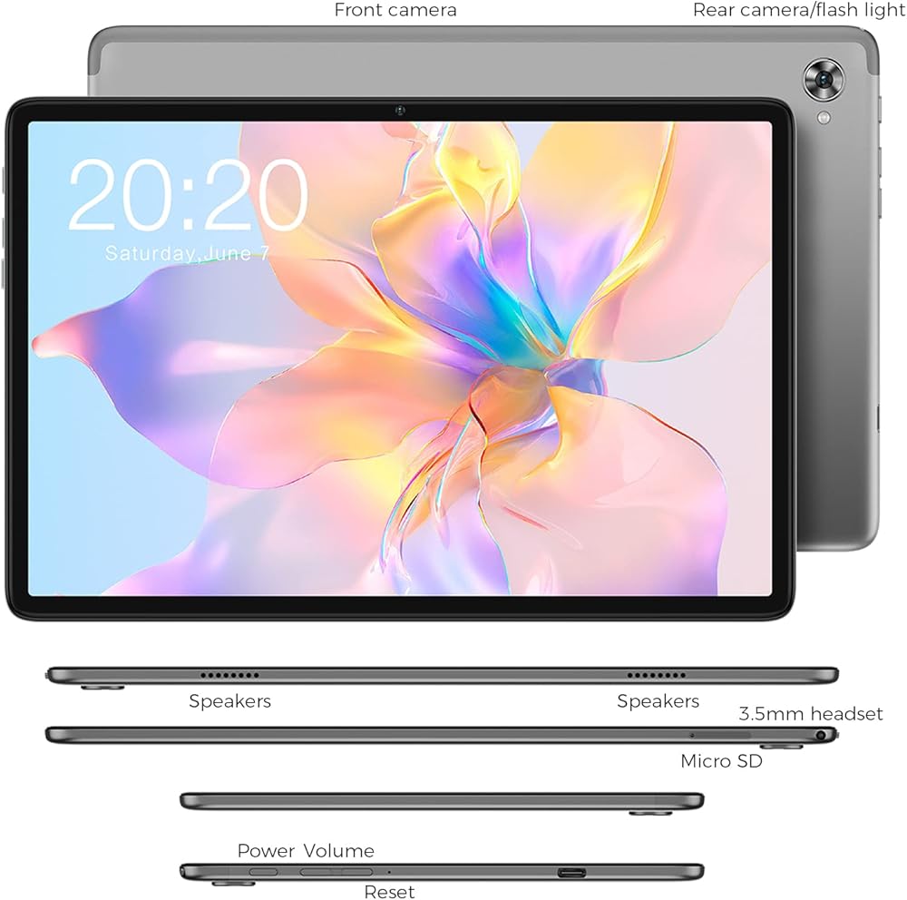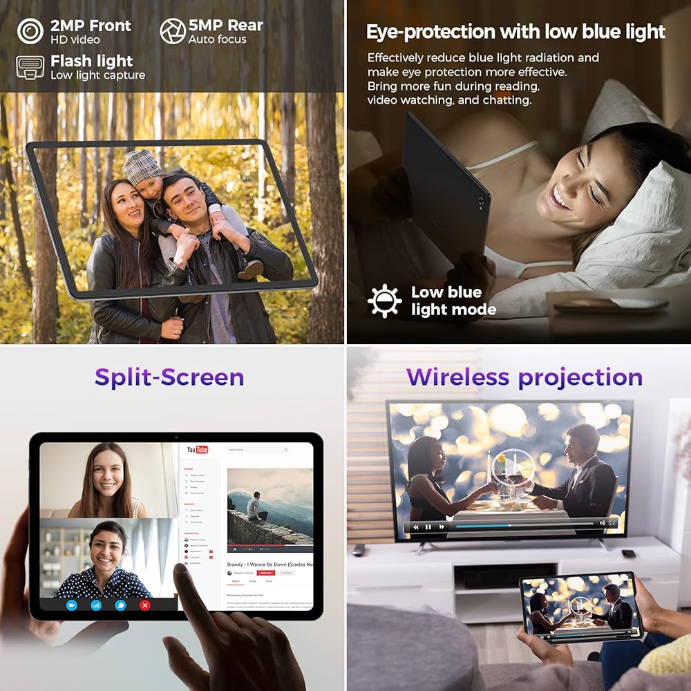 وظائف غنية + 6000 مللي أمبير في الساعة: بطارية ذات سعة كبيرة 6000 مللي أمبير في الساعة، استخدام طويل الأمد دون القلق بشأن مشاهدة الأفلام ومشاهدة الأعمال الدرامية والاستماع إلى الموسيقى وما إلى ذلك. مجهزة بمنفذ USB من النوع C + مقبس سماعة رأس مستقل 3.5 مم، الشحن أو الاستماع إلى الموسيقى لا تتداخل مع بعضها البعض، وتلبية الاحتياجات المختلفة. تجعل الكاميرا المدمجة بدقة 5 ميجابكسل + 2 ميجابكسل مكالمات الفيديو ومؤتمرات الفيديو اليومية مرضية للغاية. ميكروفونات ميكروفون مزدوجة مدمجة، تدعم تقسيم الشاشة وتسجيل الشاشة ☆ ضمان لمدة عام بدون قلق ☆ يرجى الاتصال بنا إذا كانت هناك مشكلة في الجهاز اللوحي، وسنبذل قصارى جهدنا لنجعلك راضيًا