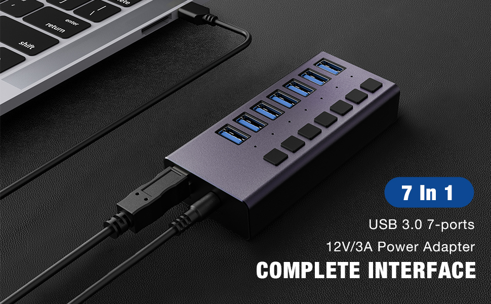 • محور منافذ USB 3.0 متعدد. يمكنك بسهولة توصيل 16 منفذ USB 3.0 بأي جهاز متوافق. يمكن لكل منفذ من موزع محور USB الذي يعمل بالطاقة شحن ما يصل إلى 5 فولت/2.4 أمبير. لا يمكن لمحول الطاقة 12 فولت / 3 أمبير توفير ما يصل إلى 2.4 أمبير من طاقة الشحن فحسب، بل يجعل نقل البيانات أكثر استقرارًا.