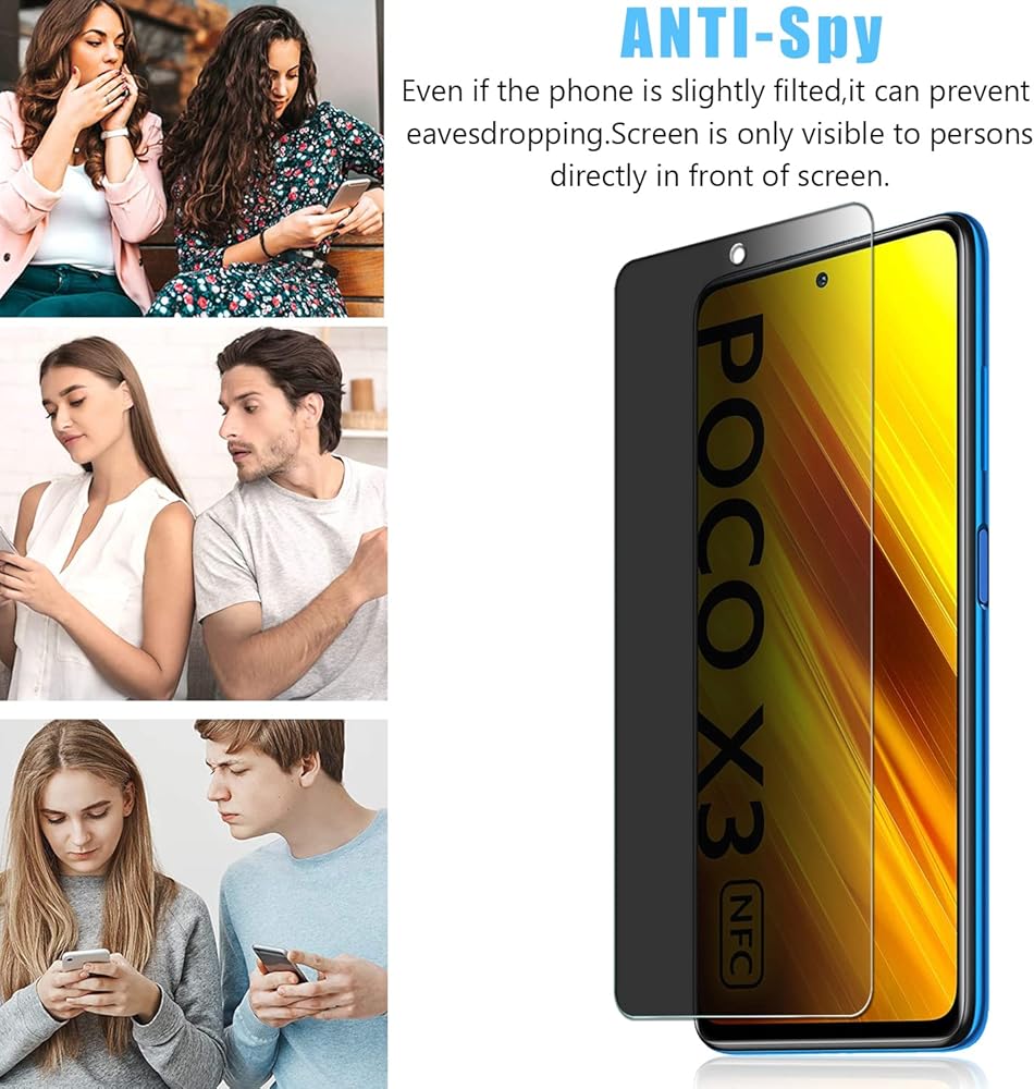 [الخصوصية] يمكن لواقي شاشة الخصوصية لشاشة الخصوصية تحقيق وظيفة خصوصية قوية للغاية بزاوية 45 درجة. عندما تستقل الحافلة أو المصعد أو المترو أو غيرها من المناسبات العامة، حتى الشخص المجاور لك لا يمكنه رؤية ما يتم عرضه على هاتفك بوضوح، مما يجعل معلوماتك الخاصة مخفية بأمان. قم بحماية الخصوصية وقل لا للمختلس النظر. التوافق - مصمم لهاتف Xiaomi Poco X3 / Poco X3 NFC / Poco X3 Pro.