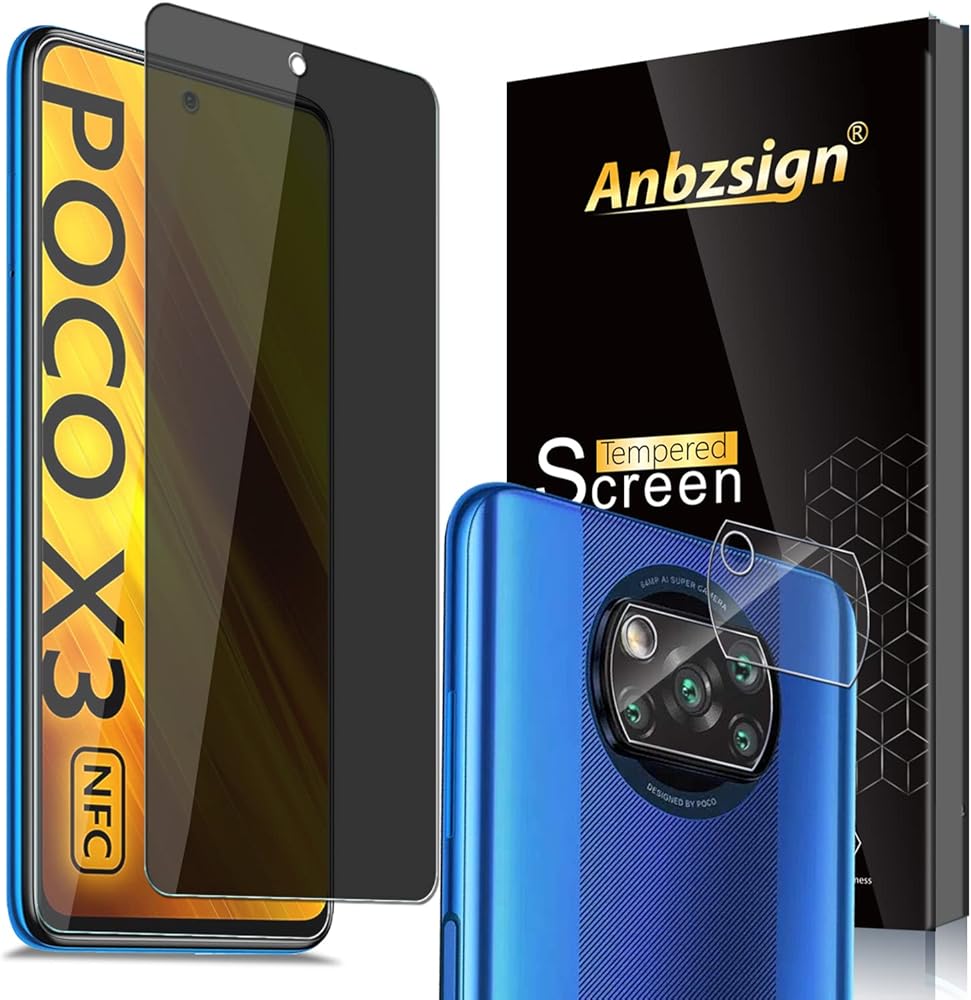 [جهاز متوافق] - مصمم فقط لهاتف Xiaomi Poco X3 / Poco X3 NFC، مع عبوتين من واقيات عدسة الكاميرا الزجاجية المقواة وعبوتين من واقيات شاشة الخصوصية.