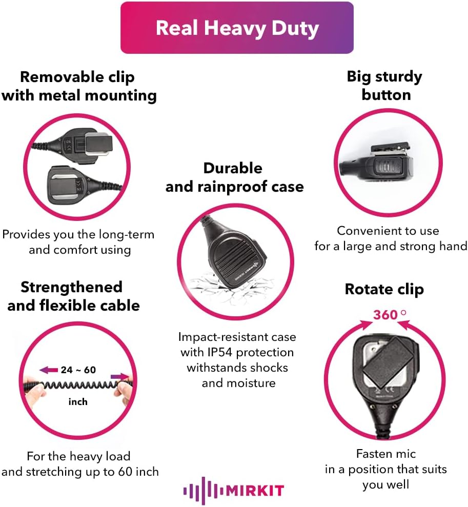 - زر PTT كبير الحجم وميكروفون مدمج مع صوت واضح للغاية، مناسب للاستخدام حتى عند ارتداء القفازات!