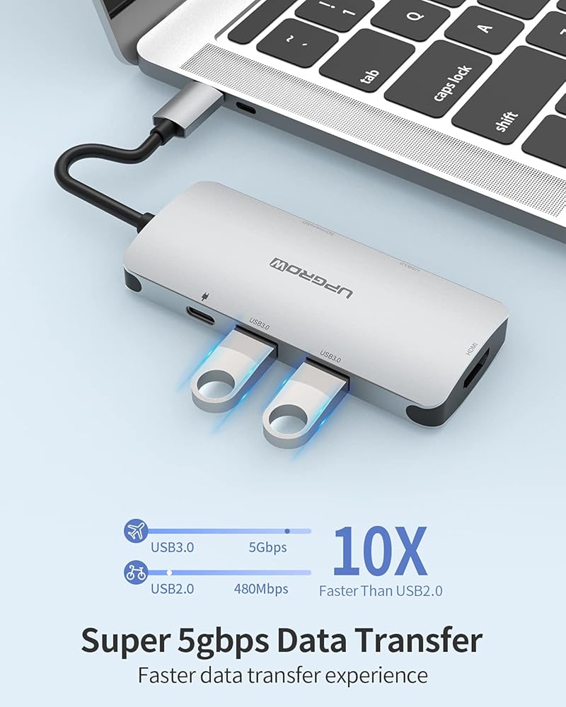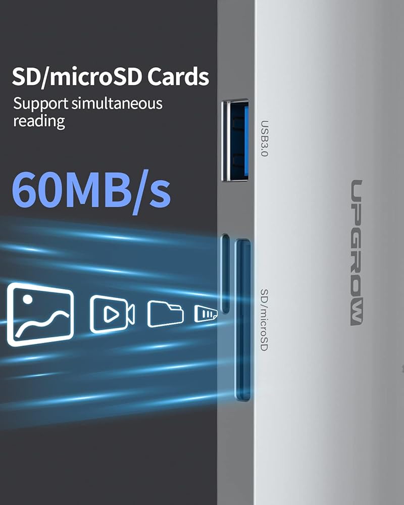 المزيد من التوسيع: احصل على منفذ USB-C للكمبيوتر المحمول الخاص بك، مع 4K HDMI، واتصال بطاقة SD ومنافذ بيانات USB-A، بالإضافة إلى الشحن عالي السرعة عبر توصيل الطاقة.