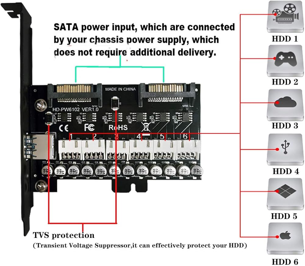 تحكم مستقل في مصدر طاقة القرص الصلب ذو 6 قنوات وتوفير الطاقة وحماية البيئة، مما يطيل عمر القرص الصلب