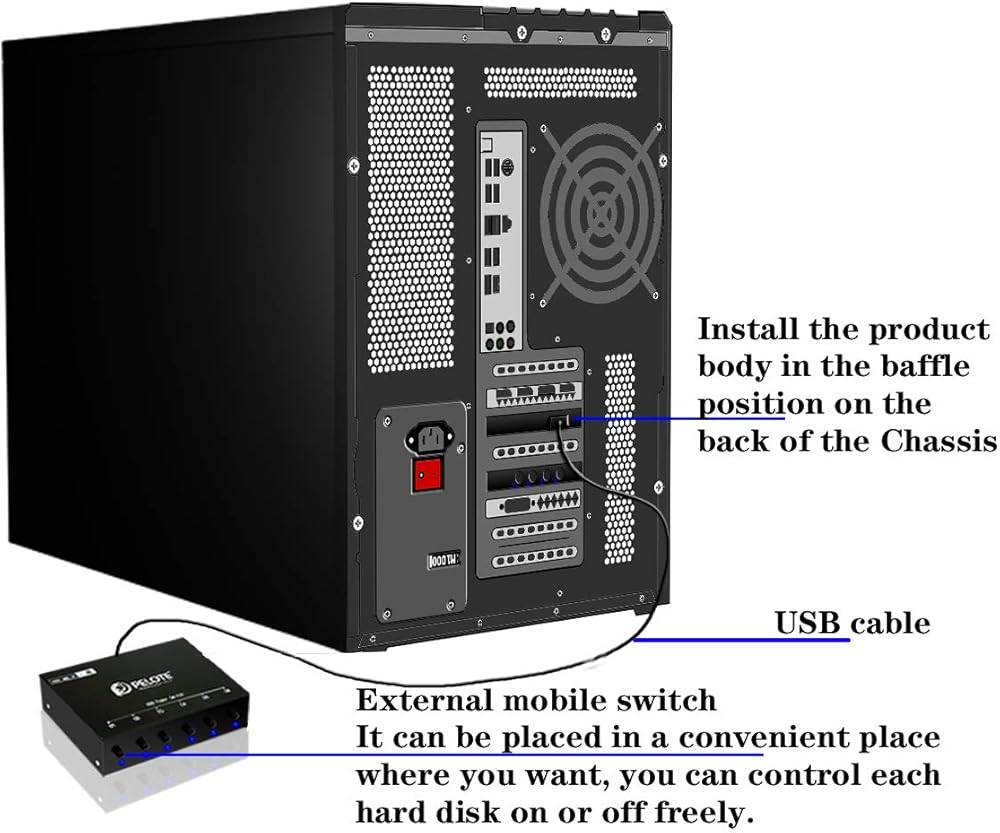 يتم تركيب مفتاح طاقة القرص الصلب هذا في وضع الحاجز على الجزء الخلفي من الهيكل وله مفتاح خارجي محمول، ويمكن وضعه في مكان مناسب حيث تريد. يمكنه توصيل ما يصل إلى ستة محركات أقراص صلبة والتحكم في مصدر الطاقة لكل محرك. يوفر مرونة كبيرة للمستخدمين.