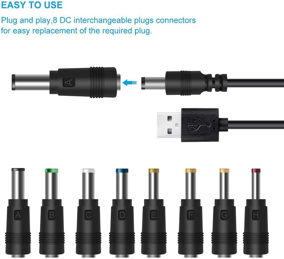 كابل متعدد الأغراض: كابل شحن USB إلى DC عالمي، محول 8 موصلات مما يجعله يناسب معظم الأجهزة المنزلية. لا داعي للقلق بشأن العثور على المحولات المناسبة عند استخدام أجهزة مختلفة.