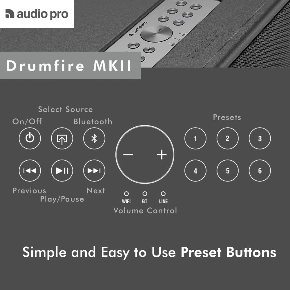 تجربة صوتية من الدرجة الأولى: Drumfire MKII هو الإصدار الجديد المحسن من Drumfire. يوفر مكبر الصوت اللاسلكي الذي يعمل بتقنية البلوتوث أعلى صوت متعدد الغرف حتى الآن. إنه يتمتع بصوت نقي وجريء مع ديناميكيات مذهلة ستمنحك قوة كبيرة، حتى بمفردها. ستشعر بكل جزء صغير من موسيقاك جسديًا.