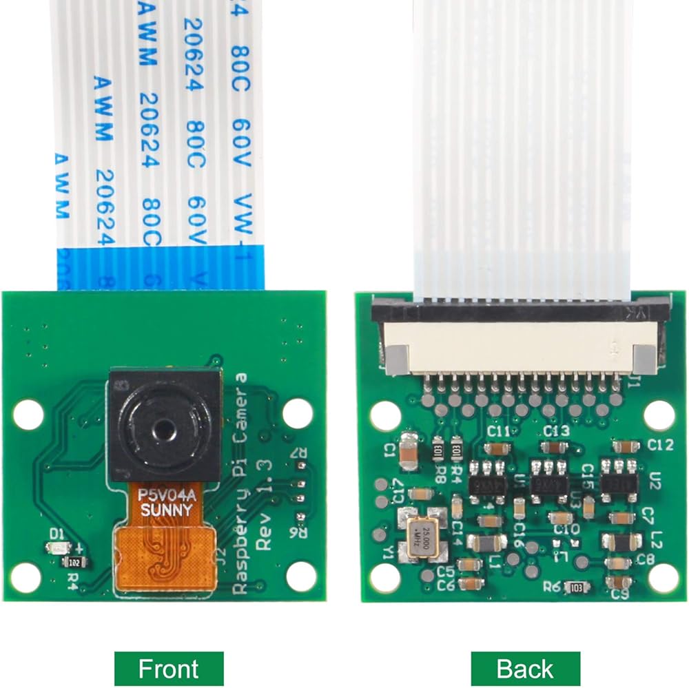 كابل شريطي 15 دبوس - واجهة تسلسلية لكاميرا MIPI ذات 15 دبوس - يتم توصيلها مباشرة بلوحة Raspberry Pi؛ حجم وحدة الكاميرا: 25 مم × 24 مم × 9 مم، مما يجعلها مثالية للجوال، ويمكن تطبيقها على التعرف على الصور وتتبعها، وما إلى ذلك.