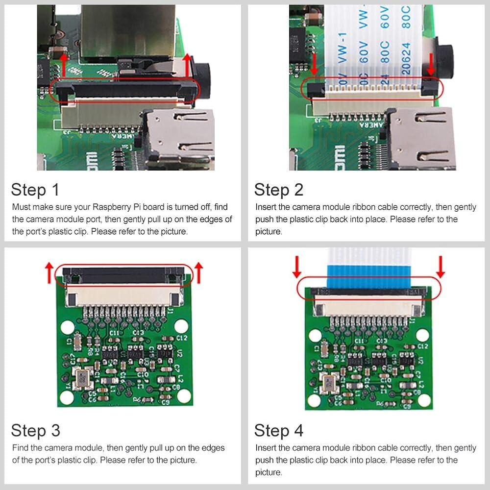4 قطع Raspberry Pi 4 كاميرا فيديو وحدة صغيرة 5 ميجابكسل 1080 بكسل مستشعر OV5647 كاميرا ويب مع كابل شريط 15 دبوس لـ Raspberry Pi Model A/B/B+، Pi 2B وRaspberry Pi 3B، Pi 3 B+، Raspberry Pi 4