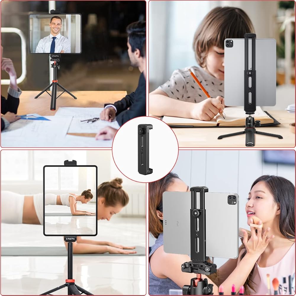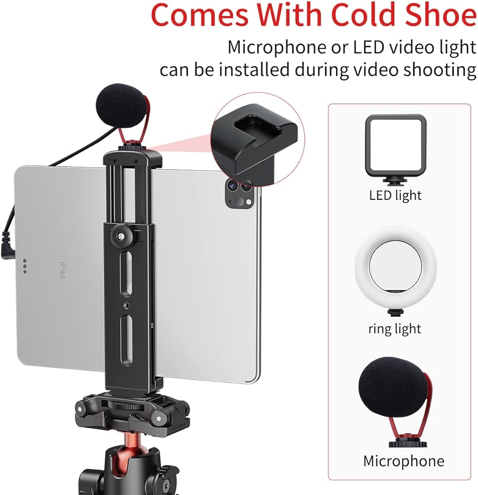 • 【استخدام واسع】حامل مزود بفتحتين لولبيتين قياسيتين 1/4 انش في الجزء السفلي والخلفي من القاعدة، يدعم هذا الحامل ثلاثي القوائم تثبيت التابلت على محور التوجيه أو حامل ثلاثي القوائم أو عصا سيلفي أو حامل ثلاثي القوائم أو حامل حلقي أو أي أجهزة ذات سن قياسي 1/4 انش - 20. مثالي لتسجيل الفيديو وصور السيلفي والتدريس عن بعد والدورات التدريبية عبر الإنترنت والموسيقى الحية والاجتماعات ومشاهدة الأفلام