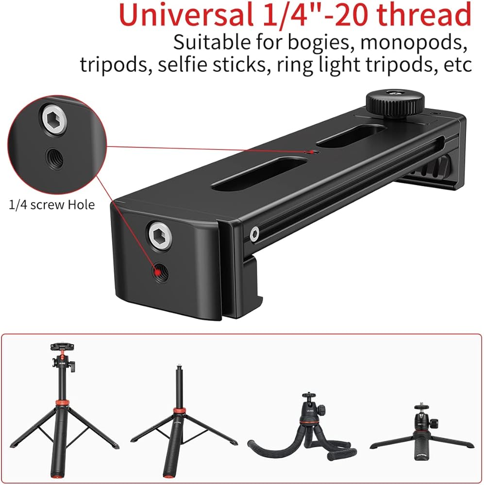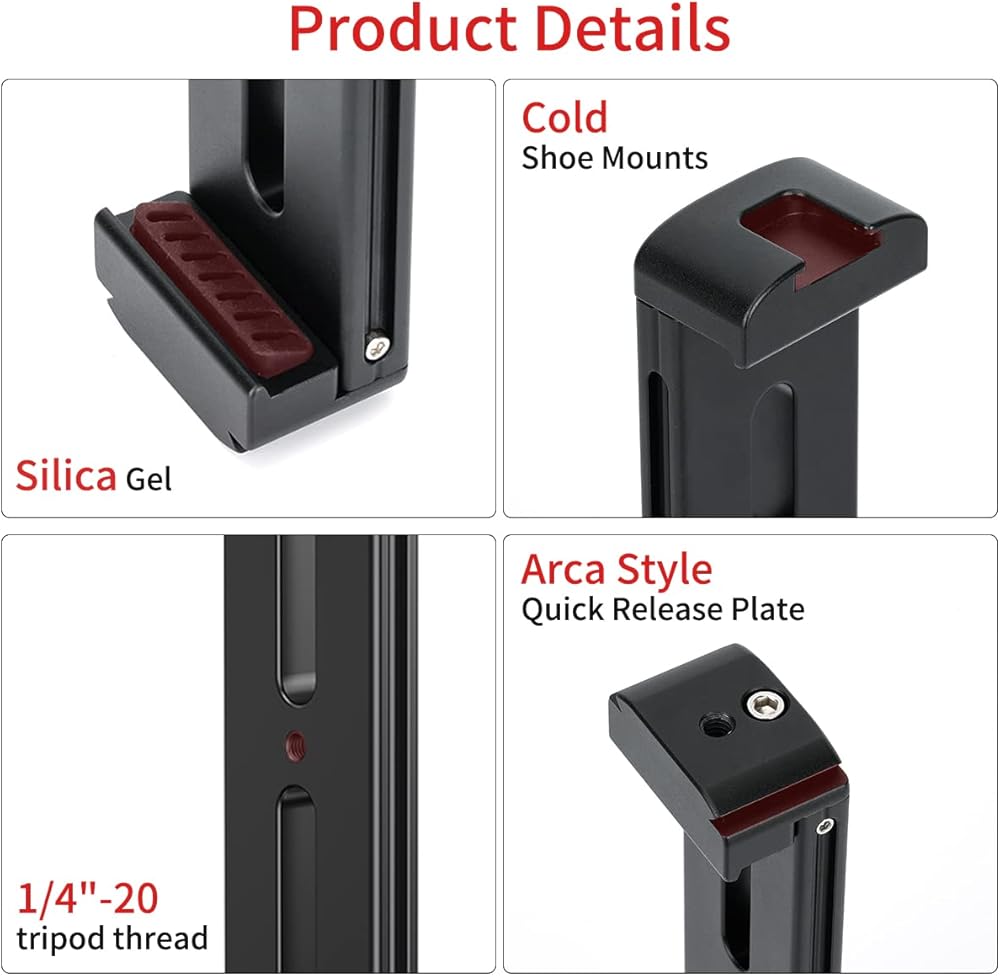 • 【تصميم كولد شو واركا 】مع حامل الحذاء البارد في الأعلى، يمكنك تركيب الميكروفون أو مصباح الفيديو LED أو الأجهزة الأخرى مع حامل الحذاء. لوحة سريعة الفك بنمط اركا يمكن تركيبها على رأس كروي ثلاثي القوائم بسرعة، متوافقة مع جميع حوامل الثلاثية والمزلقات
