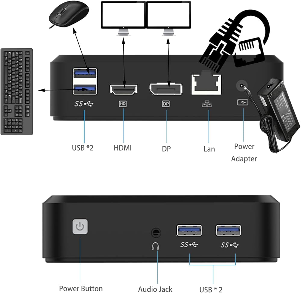 مجموعة واسعة من المنافذ: يحتوي هذا الكمبيوتر الصغير الذي يعمل بنظام Windows 11 على الكثير من المنافذ التي يمكنها بالتأكيد تلبية جميع متطلباتك في حياتك وعملك. يحتوي هذا الكمبيوتر الصغير الحجم على 4 منافذ USB (USB 3.0 x 4) لنقل البيانات. ومنفذين HDMI 1 وDP 1 لإخراج الفيديو. يحتوي هذا الكمبيوتر الصغير الذي يعمل بنظام Windows 11 pro أيضًا على منفذ RJ45 مدمج 1، ومقبس سماعة أذن مقاس 3.5 مم لإخراج الصوت، ومحول DC IN لإدخال الطاقة. غالبًا ما يُستخدم هذا الكمبيوتر الصغير الذي يعمل بنظام التشغيل Windows 11 للتحكم في سجلات النقد في المتاجر، ويعتبر الكمبيوتر أيضًا مثاليًا لأكشاك الدفع الذاتي ومحطات المعلومات في الأماكن العامة.