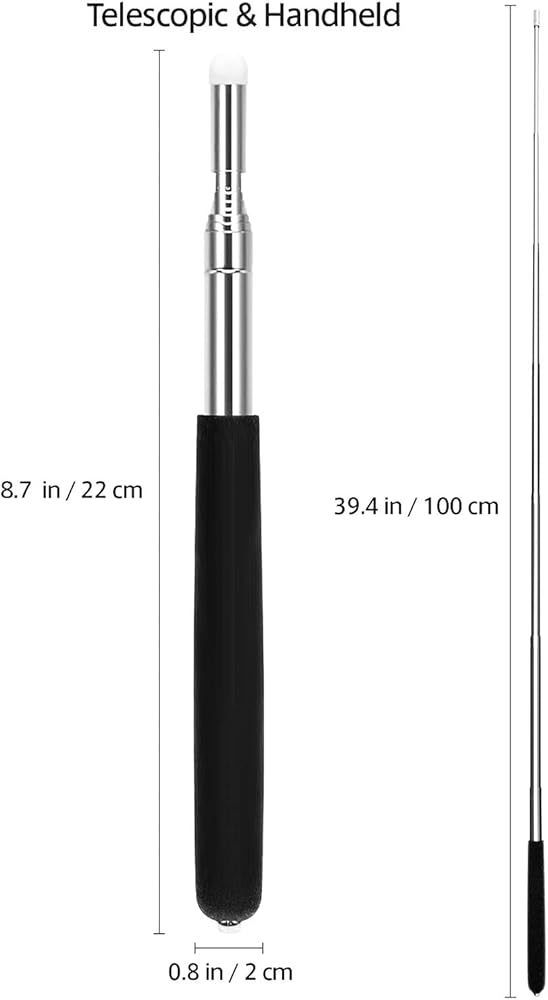 المقاس: يمتد بالكامل إلى حوالي 39 بوصة، الطول عند الطي 8.3 بوصة، قطر المقبض تقريبًا. 0.47 بوصة، متينة عند فتحها بالكامل، غير هزازة