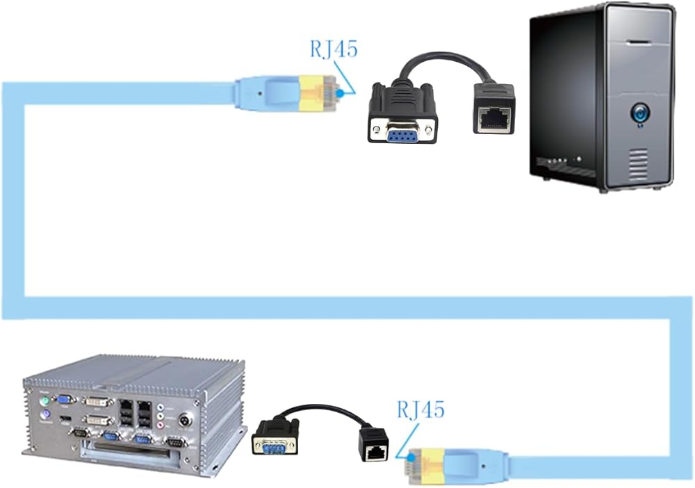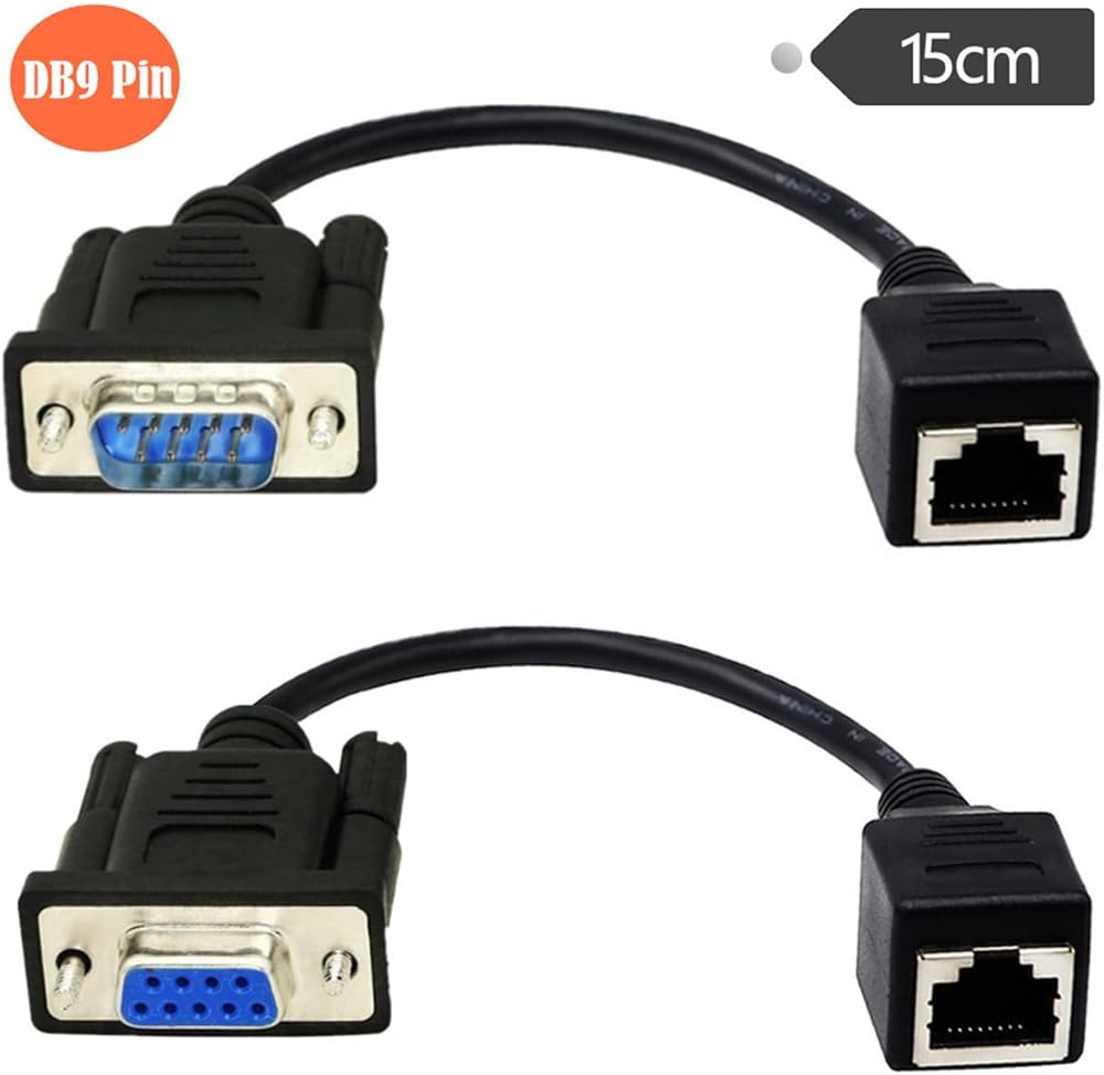 المقاس: (15 سم/6 انش) اللون: أسود، المزايا: 1 × كابل DB9 أنثى إلى RJ45 أنثى و1 × كابل DB9 ذكر إلى RJ45 أنثى.
