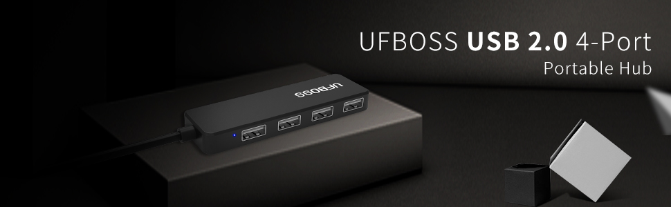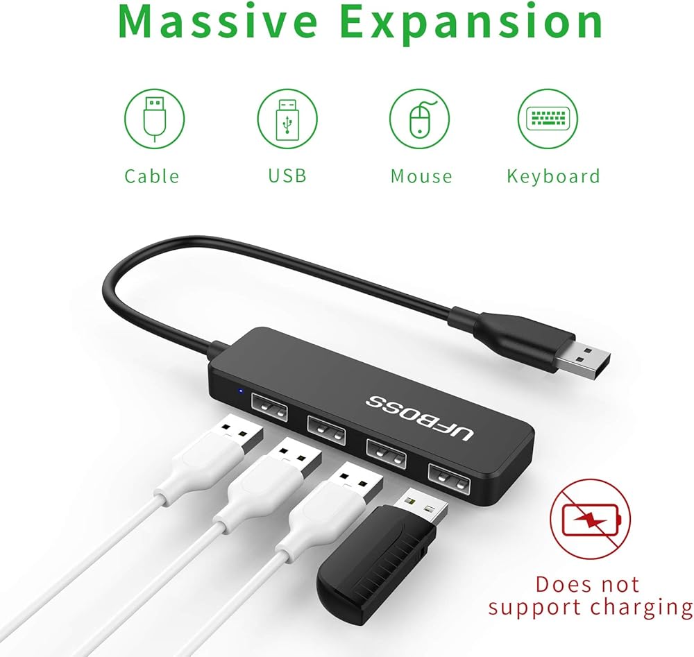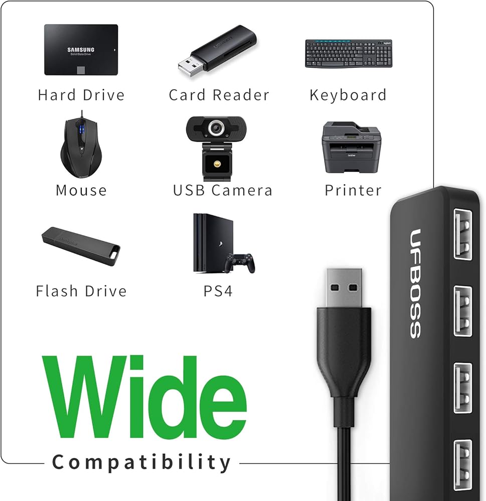 موزع بيانات فائق النحافة 4 منافذ USB 2.0 UFBOSS [2021 جديد محدث] متوافق مع MacBook, Mac Pro, Mac Mini, iMac, Surface Pro, XPS, PC, والمزيد (USB2.0-اسود)