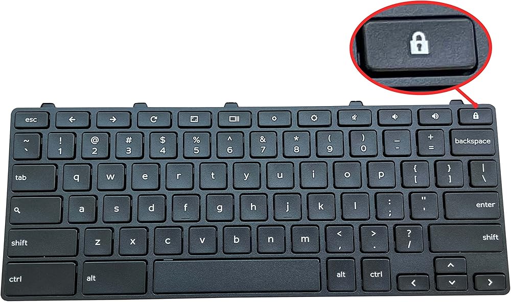 لوحة مفاتيح بديلة للكمبيوتر المحمول Sierra Blackmon متوافقة مع سلسلة Dell Chromebook 11 3100 5190 مع مفتاح قفل TPN-136US001909 AE09U018 NSK-EJ1SW 0H06WJ 490.0DQ07 تصميم أمريكي، أسود وبدون إضاءة خلفية
