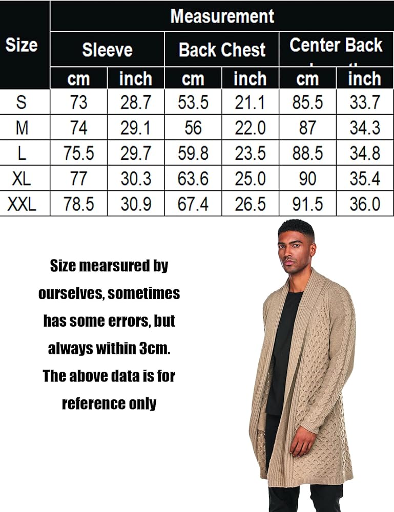 • ملاحظة والخدمة - سترة طويلة بياقة شال مكشكشة للرجال مصنوعة بالمقاس الأمريكي، يرجى الرجوع بعناية إلى جدول المقاسات في الوصف قبل الشراء. *ملاحظة* سترة كارديجان منسوجة بياقة شال للرجال ''سميكة (شتاء) / خفيفة (الخريف والربيع)''، ​​سيتم الرد على أي أسئلة في غضون 24 ساعة. *إذا كنت غير راضٍ عن المنتج، تتوفر إمكانية الإرجاع أو استرداد الأموال بالكامل، من فضلك شراء مع الثقة!*