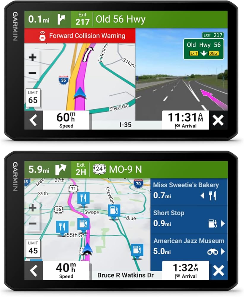 • شاشة عرض سهلة القراءة ومساعدة صوتية ومكالمات بدون استخدام اليدين: يتيح لك جهاز الملاحة GPS مقاس 7 بوصات، مع شاشة اللمس الساطعة عالية الدقة من الحافة إلى الحافة، رؤية المعلومات المهمة وتفاصيل الخريطة بسهولة. تتيح لك خاصية الاتصال بدون استخدام اليدين عند إقرانها بهاتفك الذكي المتوافق مع تقنية BLUETOOTH والمساعدة الصوتية المريحة من Garmin السؤال عن الاتجاهات إلى الأماكن التي تريد الذهاب إليها