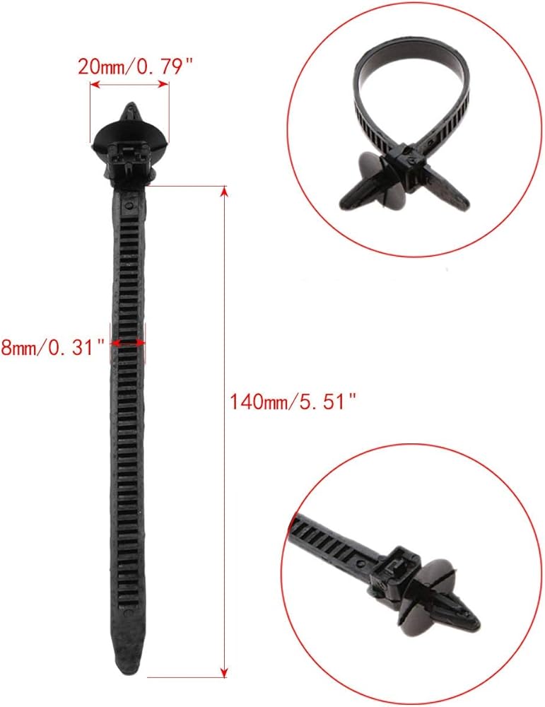 الحجم: قطر الرأس (تقريبًا) لربطة كابل النايلون الأسود هو 16 مم/0.63 بوصة، وعرض الحزام (تقريبًا) 5 مم/0.20 بوصة، والطول (تقريبًا) 185 مم/7.28 بوصة (لا يشمل الرأس) . يرجى التحقق من المقاس قبل تقديم الطلب.