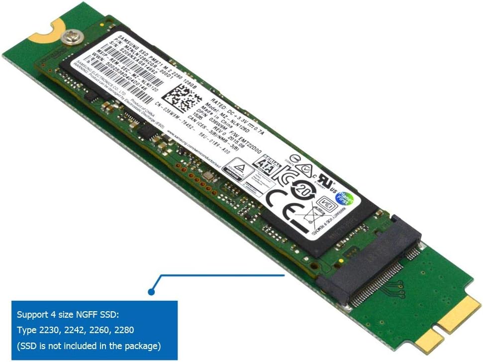 يدعم 4 أحجام NGFF SSD: النوع 2230، 2242، 2260، 2280. يدعم فقط وسيط التخزين ذو الحالة الثابتة NGFF ساتا بي.
