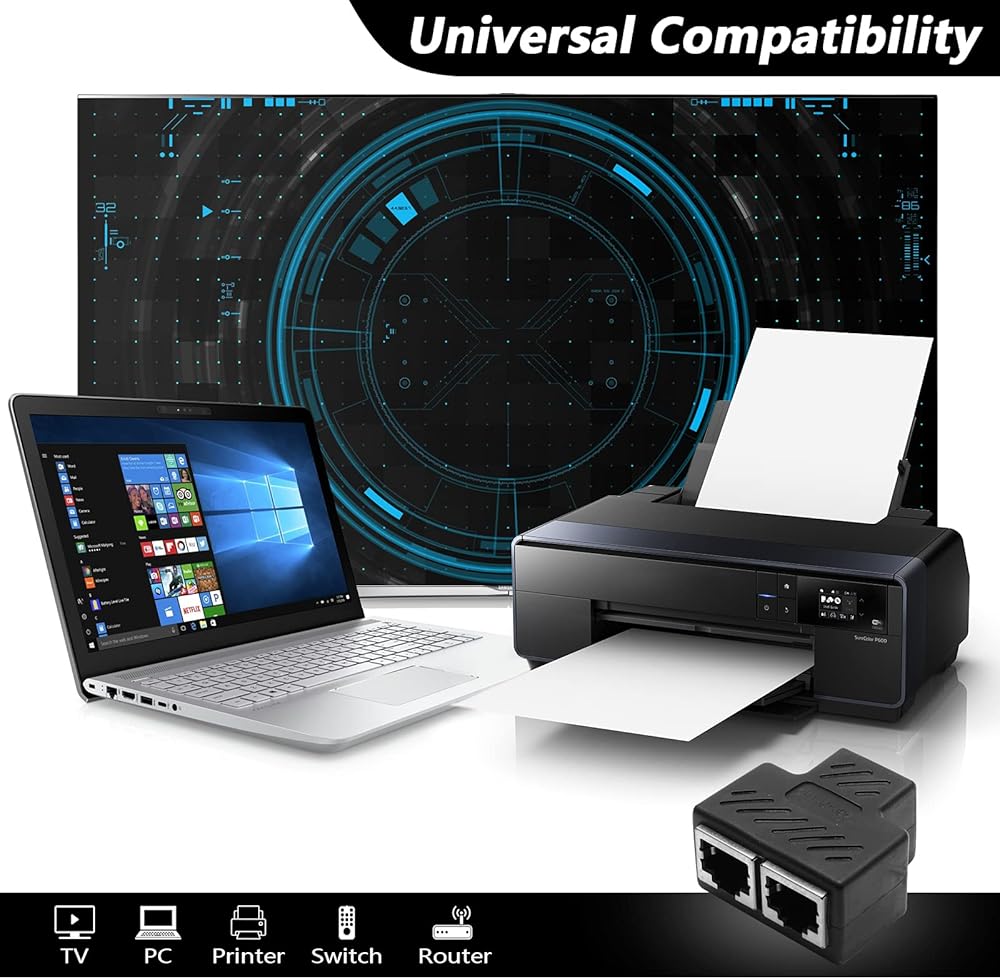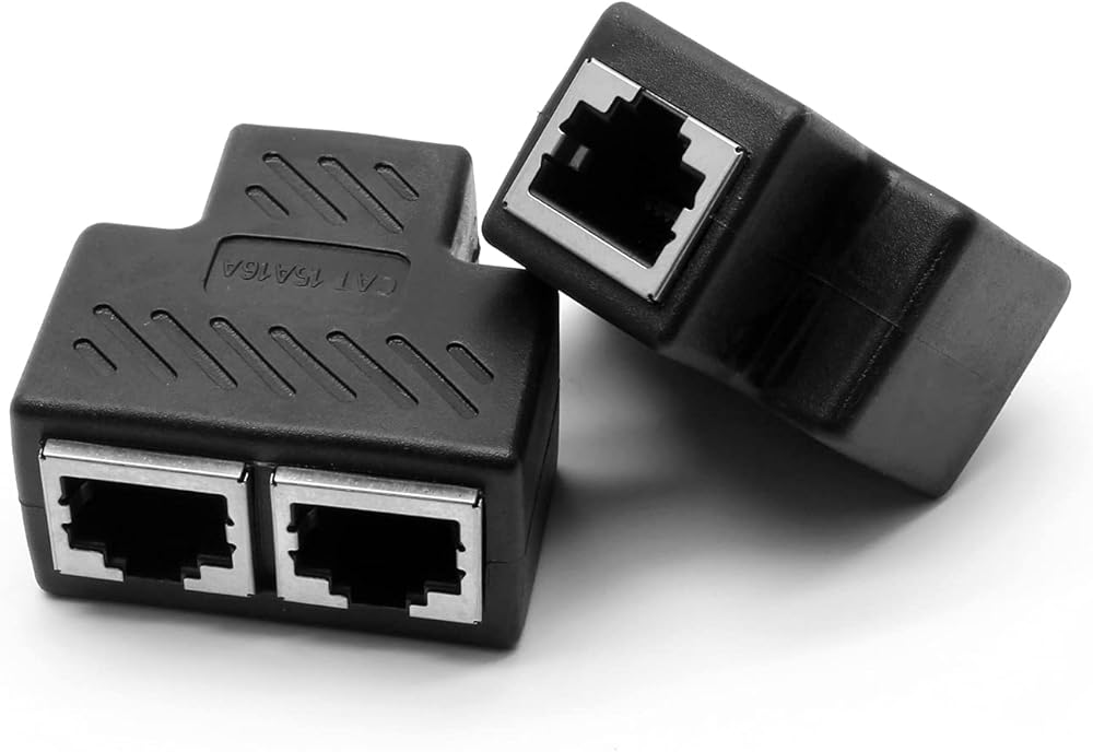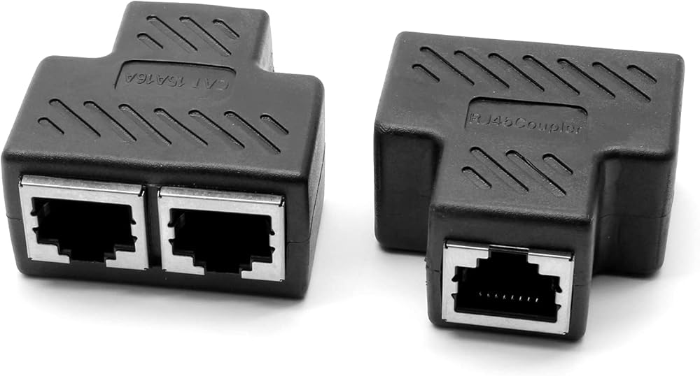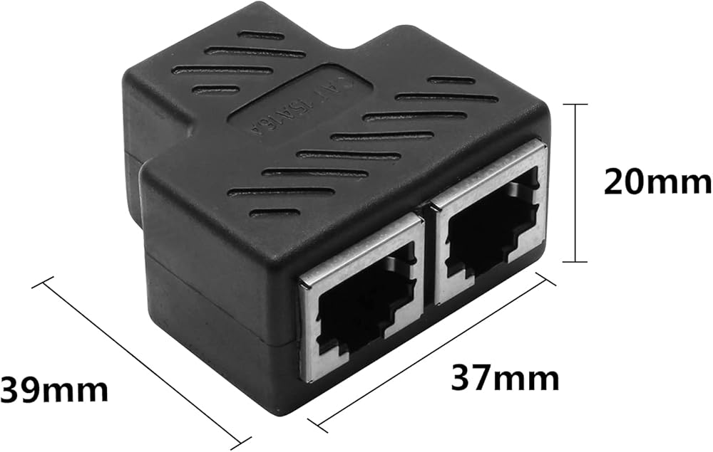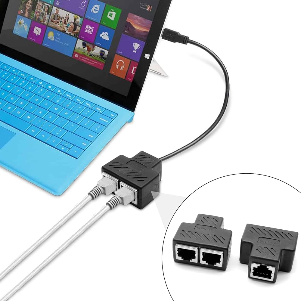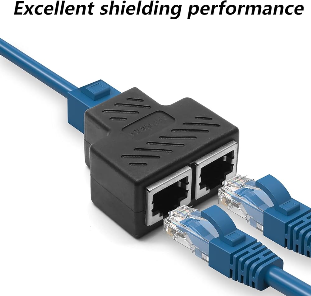 التوافق - منفذ ار جيه 45 واحد إلى اثنين، تصميم قياسي 8P8C. يساعدك موزع ايثرنت ار جيه 45 على عدم الاضطرار إلى سحب الكابل ذهابًا وإيابًا. يمكن أن يتوافق مع كات 5، كات 5 اي، كات 6، كات 7.