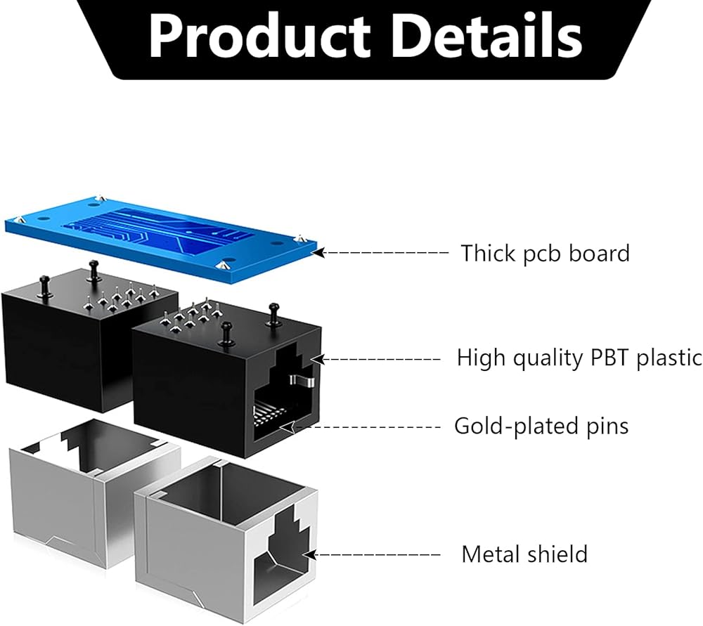 ما الذي ستحصل عليه - ستحصل على 4 قطع من محول مقسم ار جيه 45. يمكنك بسهولة تحويل وصلة ار جيه 45 إلى مقبسين ار جيه 45 باستخدام موزع الشبكة هذا.