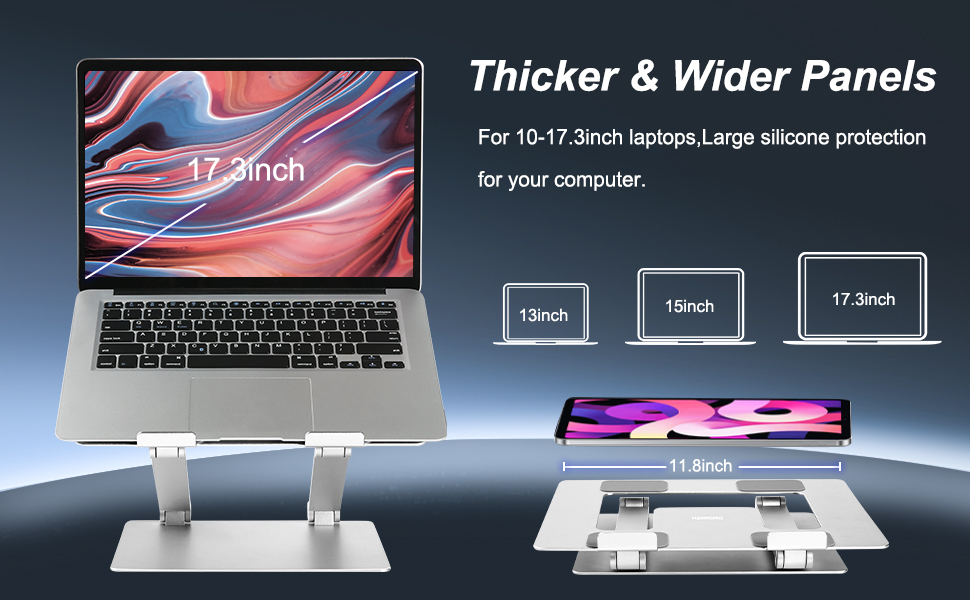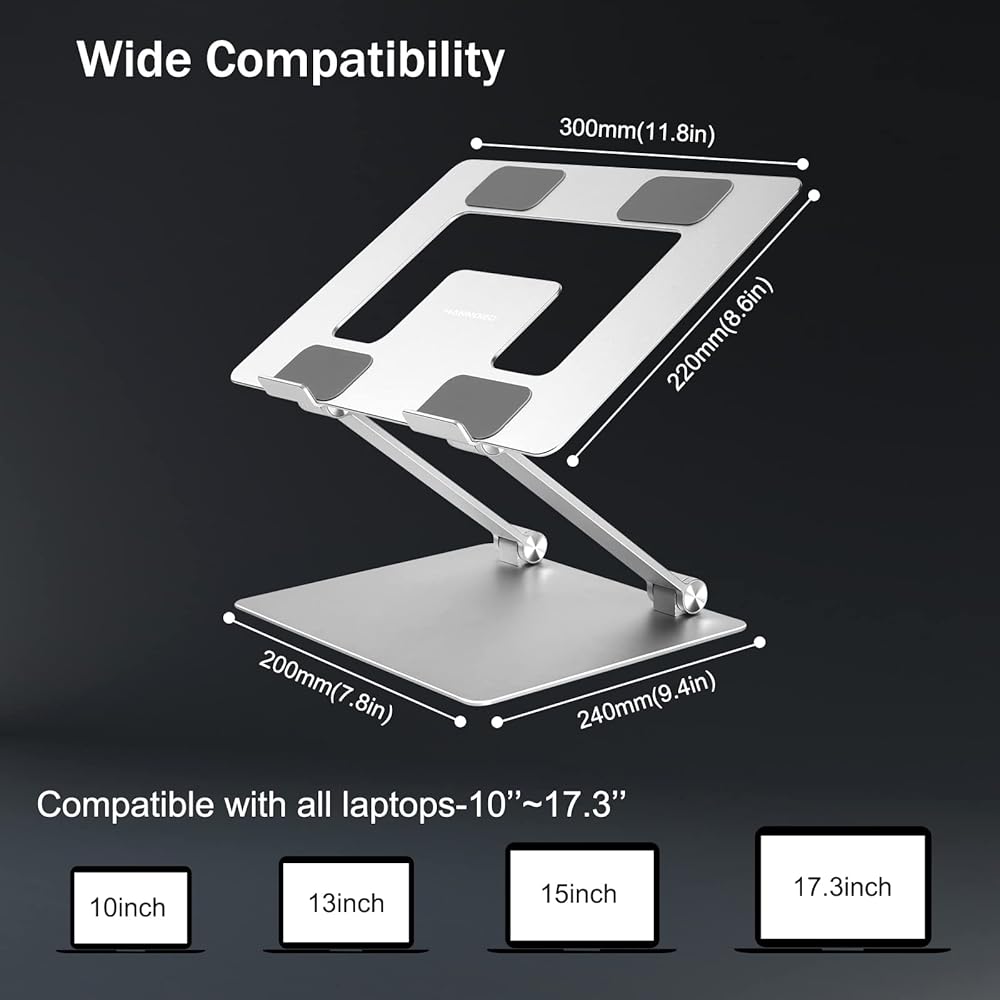Wide Compatibility & Muti-use Practical - Adjustable laptop stand fits all laptops 10 to 17.3 inches, such as notebooks PC computers 10 inches, 11 inches, 12 inches, 13 inches, 13.3 inches, 14 inches, 15 inches, 15.4 inches, 15.6 inches,17.3 inches, etc, Also excellent useful gift for your friends and family.