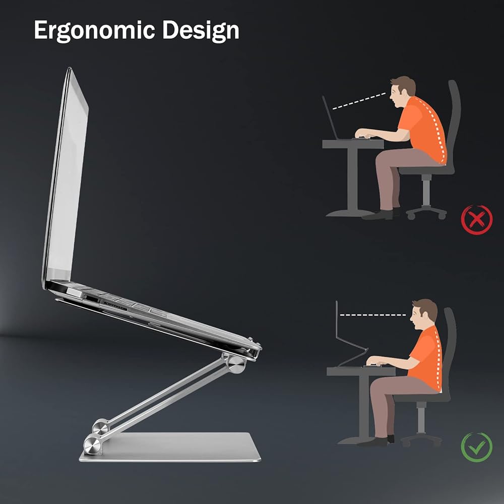 Ergonomic Adjustable Laptop Stand - This adjustable laptop stand could be adjustable in height and angle of your laptop for your better ergonomics to minimize neck pain and eye strain. No tools needed for adjustment, just a push or a pull depending upon if you want it to go up or down.