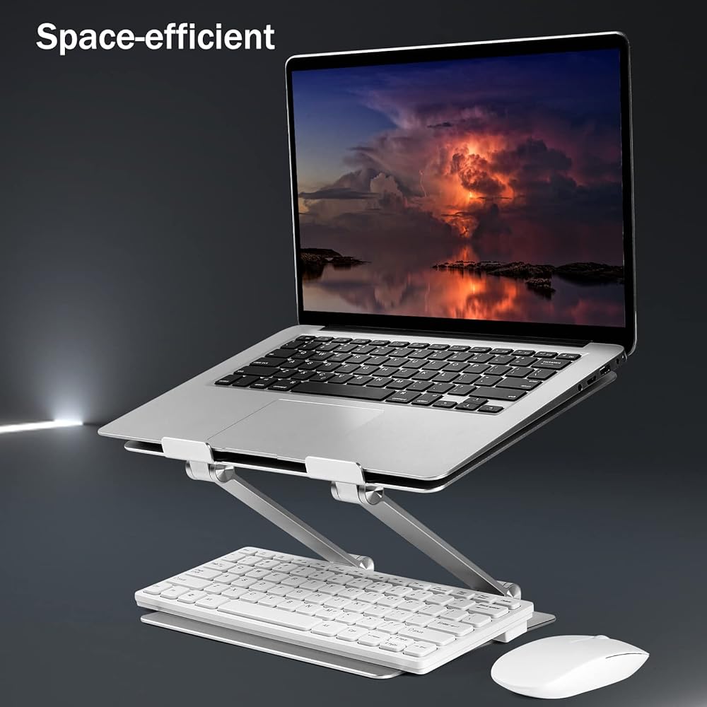 Foldable & Portable Laptop Riser - The adjustable Laptop Riser is designed to be used anywhere.Just folding this laptop stand for desk, then you can carry it to coffee shops, your office, or wherever you go and It can be fold flat if you need to store it, create extra space on your desk and keep your desk clean and organized.