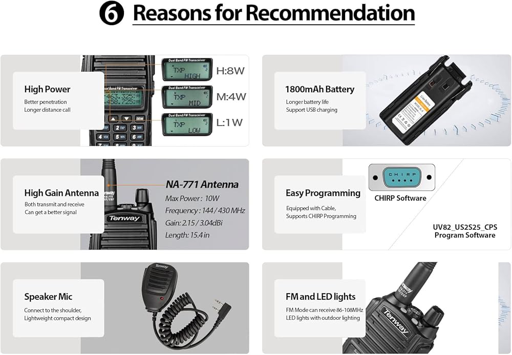 توافق واسع: يغطي راديو هام Baofeng UV-82Pro نطاق التردد الأكثر استخدامًا، مما يجعله متوافقًا مع العديد من أجهزة الراديو المحمولة الأخرى مثل سلسلة Baofeng BF-F8HP وBaofeng UV-82.