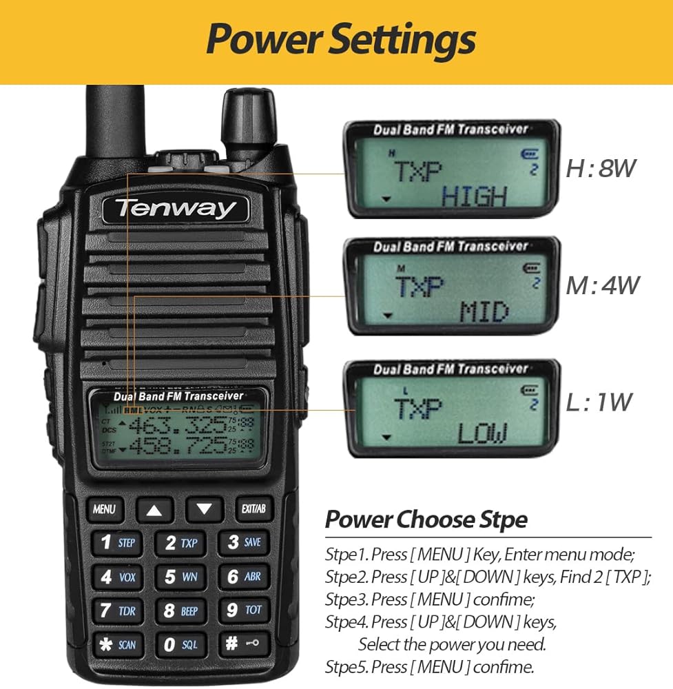 【مخرج الطاقة】طاقة عالية / متوسطة/منخفضة قابلة للتبديل (8 وات/4 وات/1 وات)، راديو قابل للبرمجة يدعم برمجة لوحة المفاتيح أو الكمبيوتر الشخصي (للاستخدام في الهواء الطلق/المنزل/مكان العمل، إلخ.)