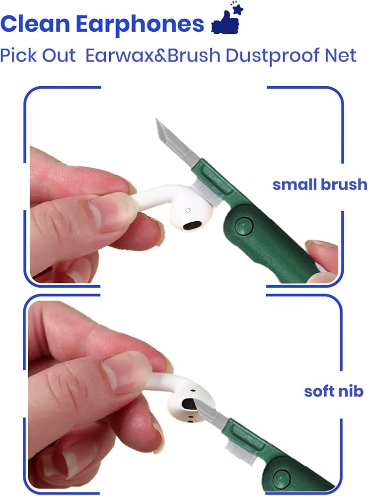 أكثر من مجرد منظف سماعات الأذن: تُستخدم أداة التنظيف على نطاق واسع لتنظيف مستقبلات سماعات الأذن وصناديق الشحن وعدسات غطاء الكاميرا وأغطية مفاتيح الكيبورد ومنافذ الشحن وشاشات الساعة ومكبرات صوت الايفون وما إلى ذلك؛
