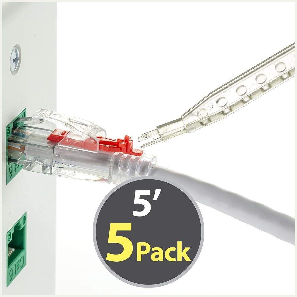 كابل إيثرنت CAT6 قابل للقفل NTW بطول 5 أقدام، كابل تصحيح شبكة إيثرنت RJ45 net-Lock (UTP)، Snagless، رمادي (NL-U6KC005LG5R) + 10 إدخالات مفاتيح net-Lock + 1 أداة استخراج متضمنة، 5PK