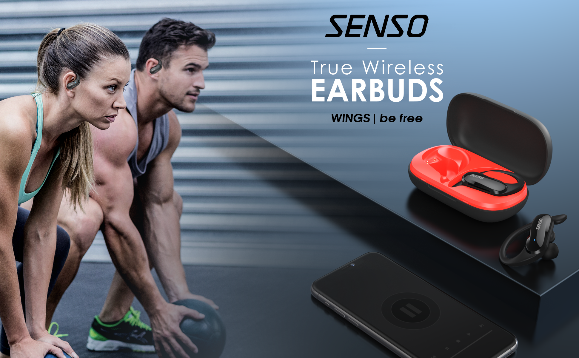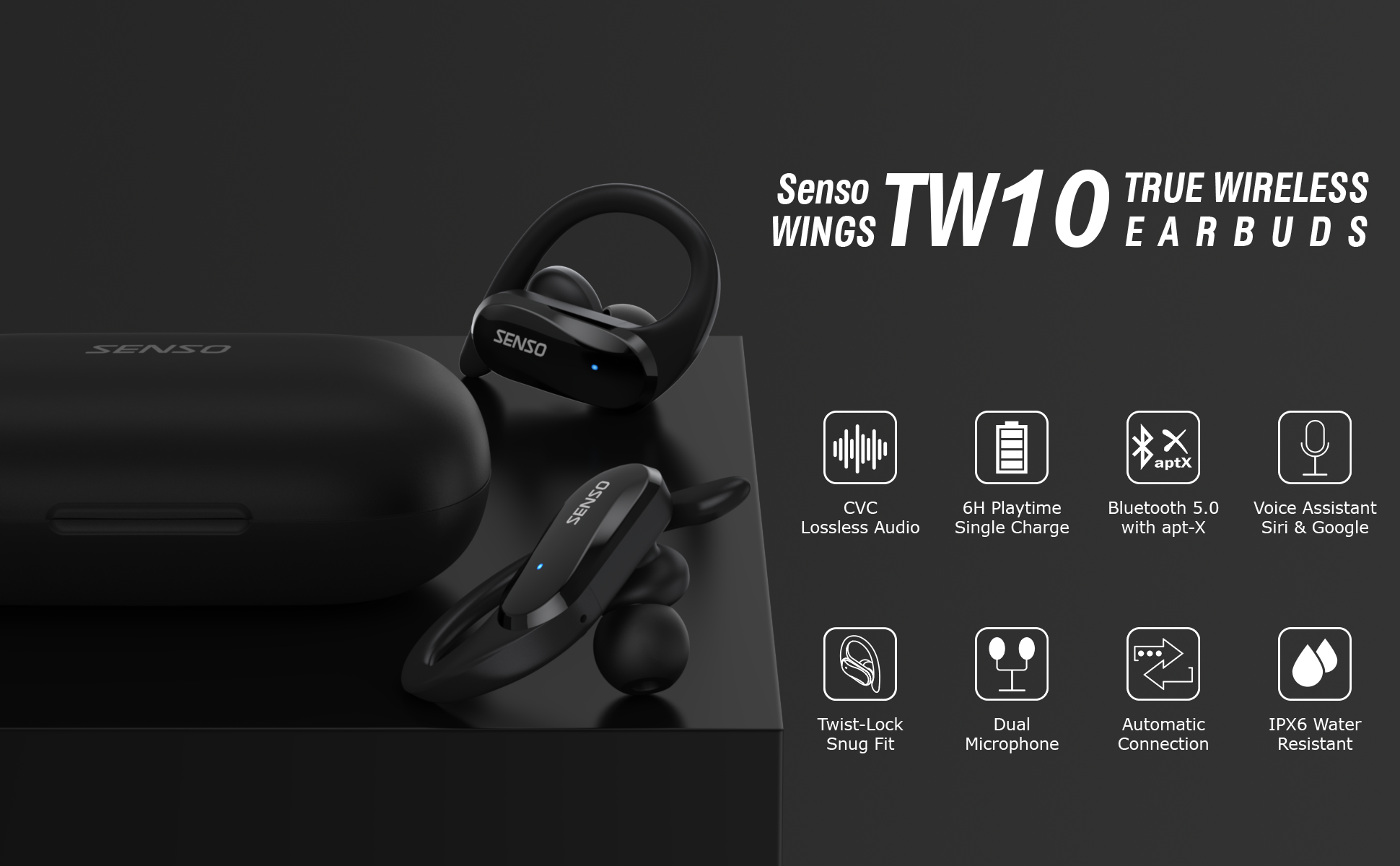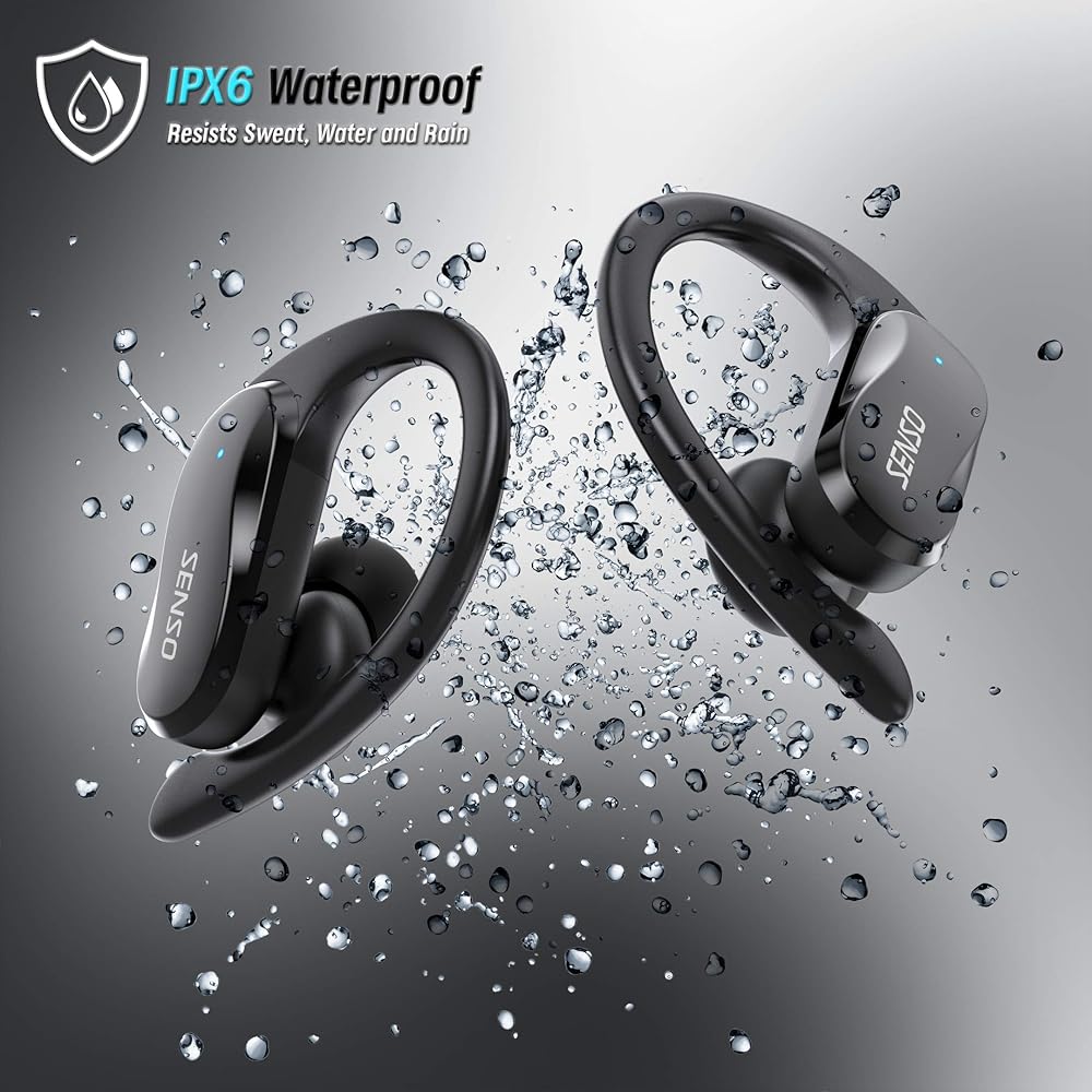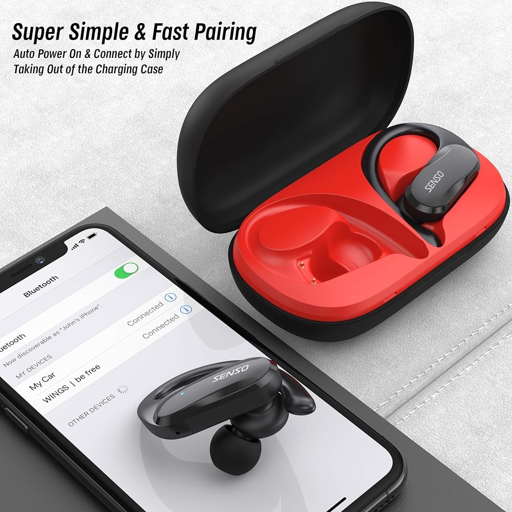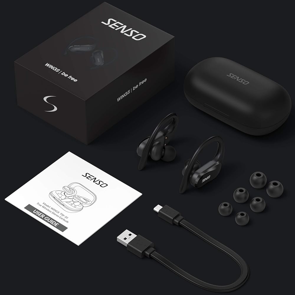 سينسو سماعة اذن لاسلكية بلوتوث ترو - افضل سماعات رياضية تي دبليو اس للتمرين بخاصية الغاء الضوضاء ومقاومة للعرق مع ميكروفون وقت تشغيل 40 ساعة للايفون والجري وصالة الالعاب الرياضية