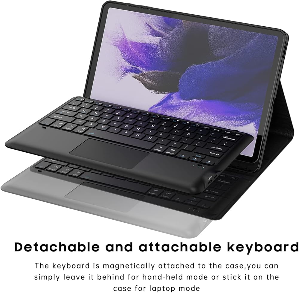 يناسب تمامًا: متوافق مع سامسونج جالاكسي تاب S7 FE 12.4 بوصة 2021 (الموديل: SM-T730/SM-T736) فقط، (ليس لإصدارات سلسلة سامسونج جالاكسي تاب S7 الأخرى!!). تغطي جميع حواف الكيبورد هذا التابلت بالكامل، ويوفر الجزء الأمامي والخلفي حماية كاملة. يمكن للكيبورد أن تمنع الخدوش والاصطدامات والأوساخ والتلف الناتج عن الاستعمال اليومي. وظيفة النوم/الاستيقاظ التلقائي، يوفر الشريط المغناطيسي المدمج ميزة النوم/الاستيقاظ التلقائي، ويقوم تلقائيًا بتشغيل جهازك أو وضعه في وضع السكون عند فتح الغطاء وإغلاقه. سهلة الاستخدام وموفرة للطاقة وصغيرة الحجم للسفر أو عن بعد بشكل مريح. كيبورد لاسلكية قابلة للفصل، كيبورد ايه بي اس عالية الجودة، مع رقاقة كيبورد ممتازة، تجعلك تشعر بالراحة الشديدة عند النقر. قائمة العبوة: حافظة جلدية للوحة مفاتيح سامسونج جالاكسي تاب S7 FE 1 كابل 1 دليل المستخدم 1.