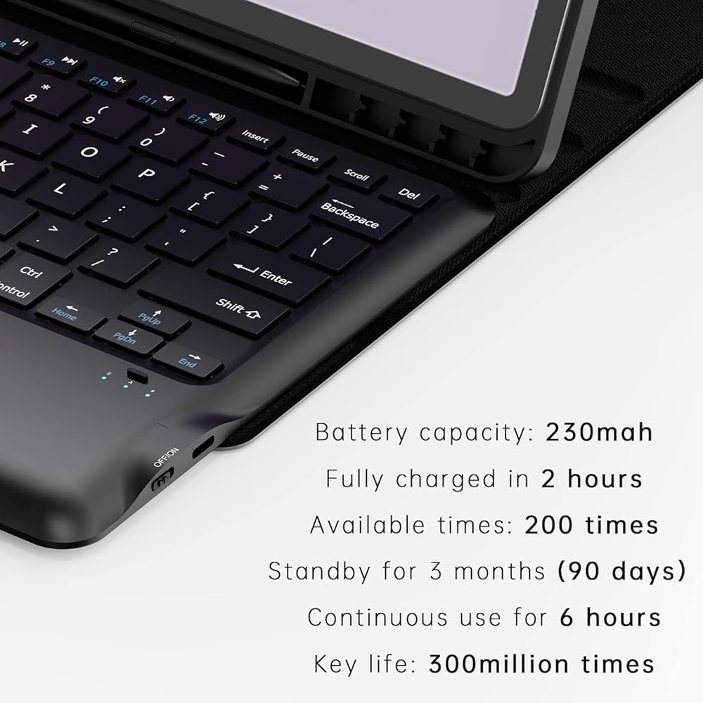 لوحة مفاتيح لاسلكية قابلة للفصل: لا يمكن للغطاء الواقي للوحة المفاتيح القابل للفصل حماية التابلت فحسب، بل يستخدم أيضًا كيبورد البلوتوث اللاسلكية هذه لتجعلك تشعر باللابتوب "الحقيقي". لوحة مفاتيح كويرتي مدمجة، لا حاجة إلى ماوس منفصل. تحتوي لوحة اللمس أيضًا على أزرار النقر الأيسر والأيمن، مما يجعل التنقل في المحتوى الخاص بك أسهل من أي وقت مضى
