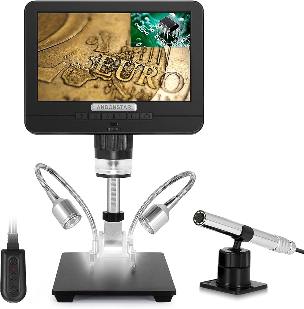 مجهر إلكتروني رقمي AD206S بعدسة مزدوجة 7 بوصة مجهر إلكتروني منظار منظار طويل المدى مجهر كهربائي PCB لإصلاح الهاتف ساعة SMD/SMT أداة لحام