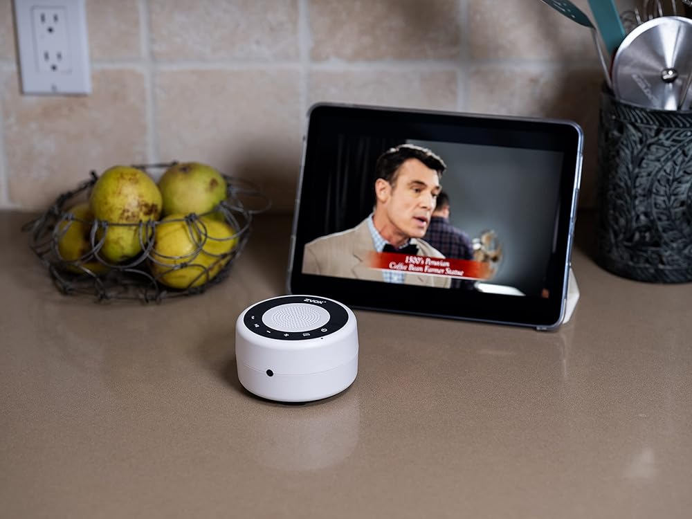 مكبر صوت ZVOX AV70 مزود بتقنية المساعدة السمعية، وميكروفون، ومكبر صوت للمؤتمرات، وبطارية قابلة لإعادة الشحن، واتصال بلوتوث لاسلكي للاستماع إلى الموسيقى والأفلام من الكمبيوتر اللوحي أو الهاتف أو الكمبيوتر المحمول أو التلفزيون