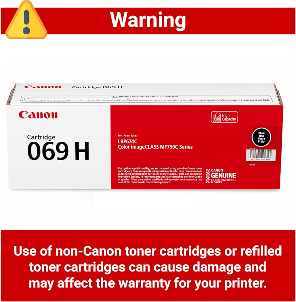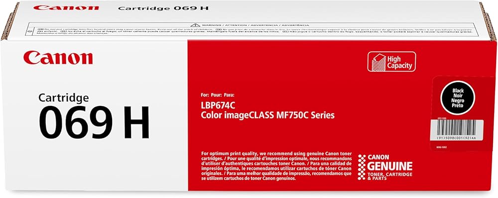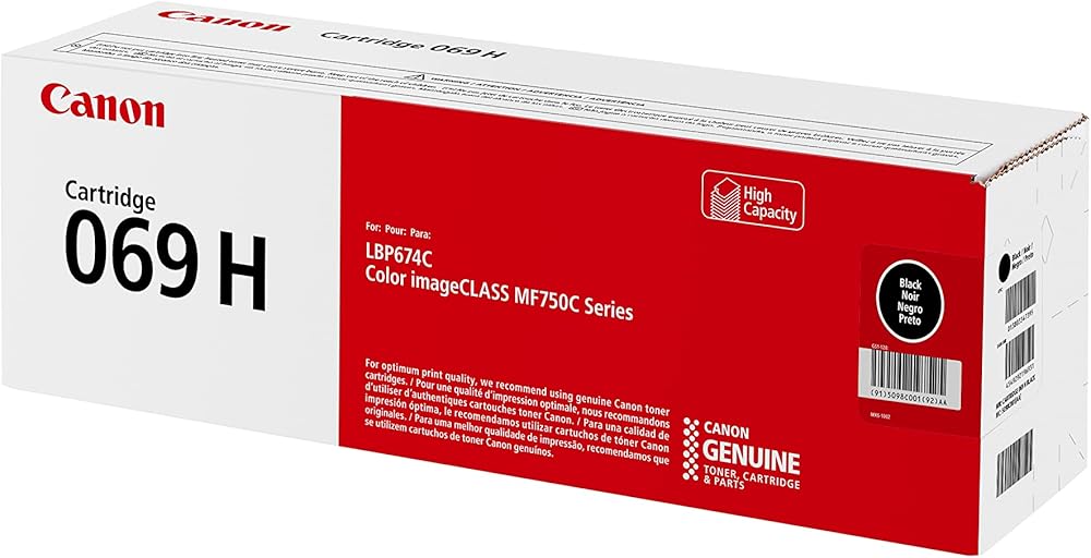 كانون يعمل الحبر الأصلي 069 / 069 H مع طابعات الليزر LBP674Cdw وMF753Cdw وMF751Cdw. ينتج الحبر 069 CMY ما يصل إلى 1900 صفحة، ينتج اللون الأسود ما يصل إلى 2100 صفحة، و069 سي ام واي عالي السعة ينتج ما يصل إلى 5500 صفحة، ينتج اللون الأسود ما يصل إلى 7600 صفحة (معيار ايزو / اللجنة الكهروتقنية الدولية).
