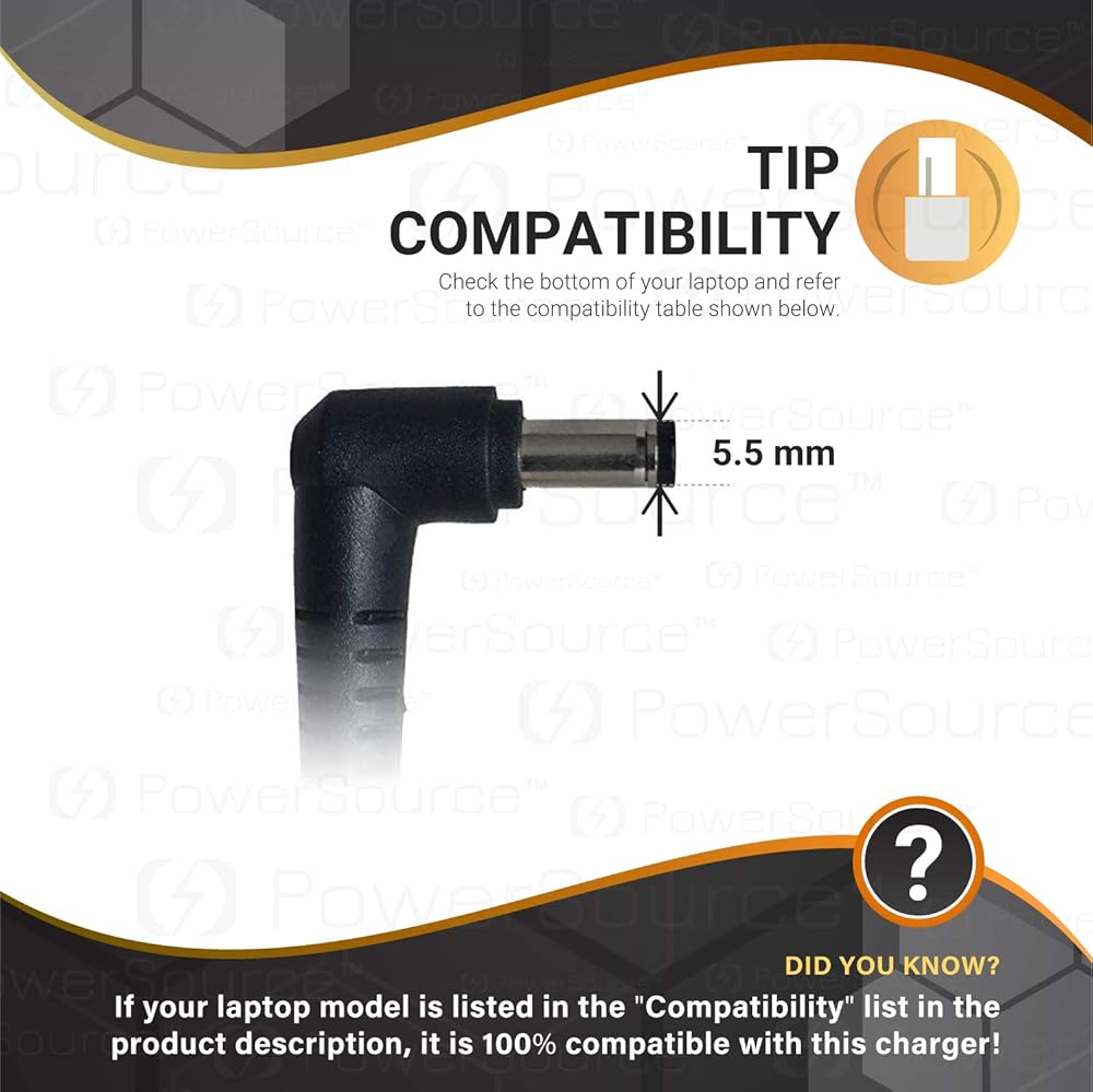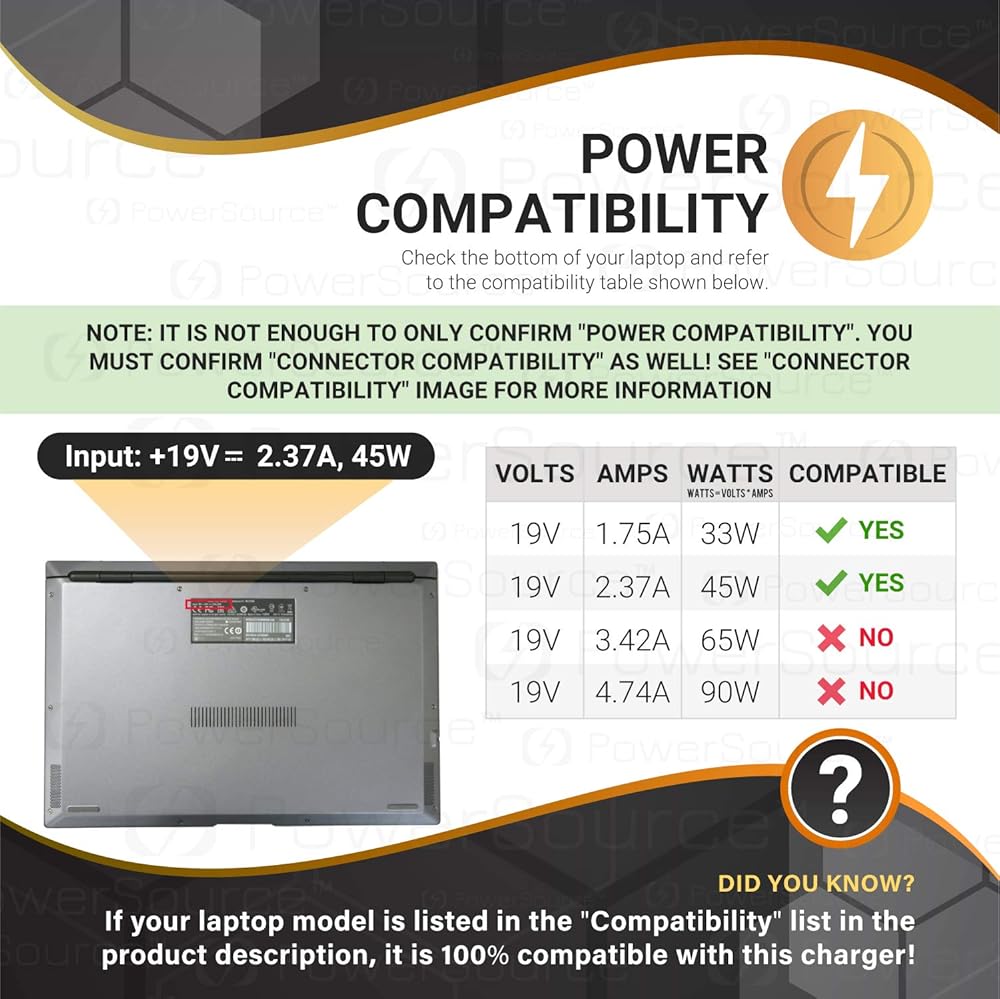 • مواصفات الطاقة - يرجى أيضًا التحقق من صورة توافق الموصل! الحد الأقصى للإخراج: 19 فولت 2.37 أمبير 45 وات (19 فولت 1.75 أمبير 33 وات متوافق أيضًا) / نطاق فولت الإدخال: 110-240 فولت / استبدال سلك الطاقة لمحول التيار المتردد للكمبيوتر المحمول الأصلي من Asus بواسطة PowerSource. لا يكفي فقط تأكيد "توافق الطاقة"، بل يجب عليك تأكيد "توافق الموصل" أيضًا!