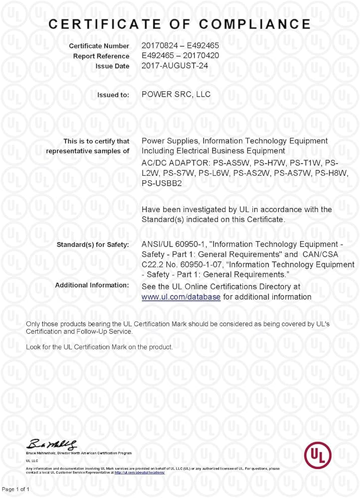 • السلامة / قائمة UL - مختبرات Underwriters Laboratories، المختبر الأمريكي الرائد لاختبار المنتجات الاستهلاكية، تُدرج منتج PowerSource هذا على أنه يلبي معاييرها الخاصة بالسلامة الكهربائية والتصميم في الولايات المتحدة وكندا. لا تشتري أجهزة شحن من المحتمل أن تكون رديئة أو خطيرة يمكن أن تلحق الضرر بجهاز الكمبيوتر المحمول الخاص بك أو ما هو أسوأ! بالإضافة إلى ذلك، تشتمل منتجاتنا على العديد من آليات السلامة، بما في ذلك الحماية ضد قصر الدائرة، والجهد الزائد، والتيار الزائد، والسخونة الداخلية.