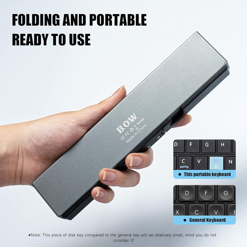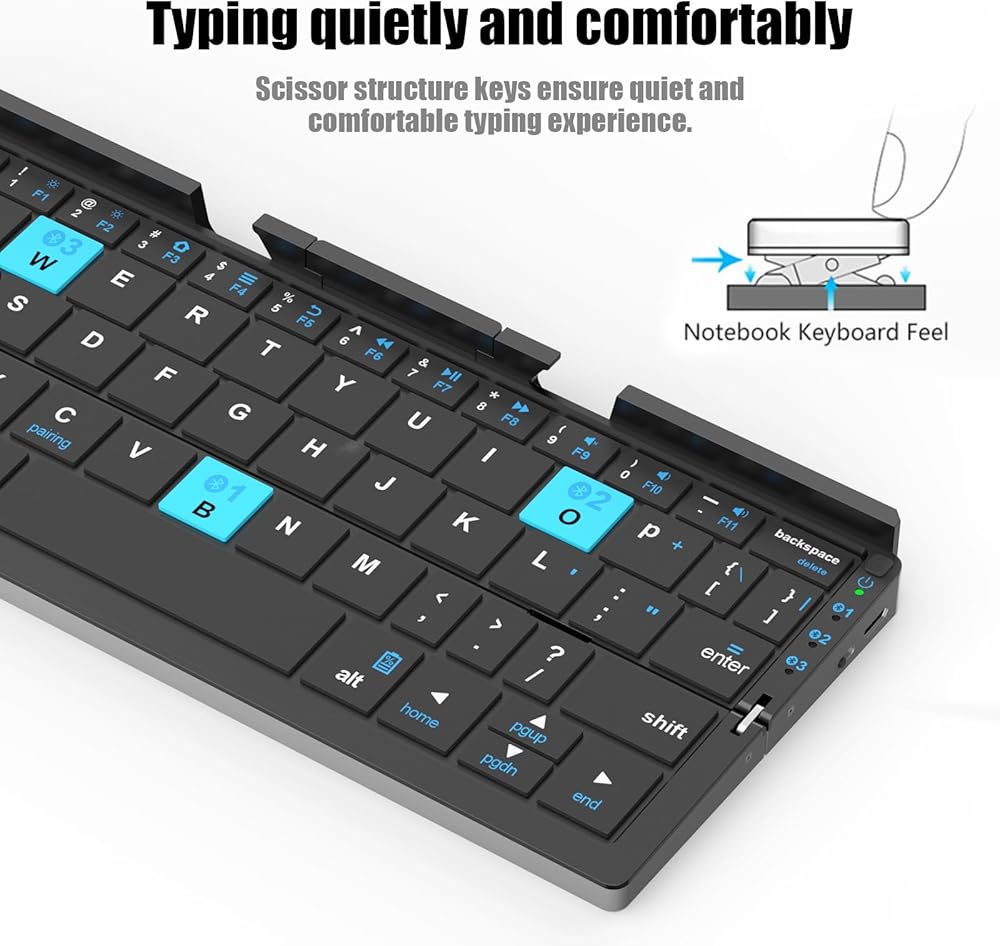 • 【متوافقة مع لوحة المفاتيح القابلة للطي 】لوحة المفاتيح القابلة للطي iOS/Windows/Android/ MacOS/HMS متوافقة تمامًا مع أنظمة تشغيل iOS وAndroid وWindows للهواتف المحمولة والأجهزة اللوحية وأجهزة الكمبيوتر المحمولة وأجهزة الكمبيوتر المكتبية، وتوفر اتصال بلوتوث مستقر وسريع. بلمسة واحدة فقط، يمكن للوحة المفاتيح بلوتوث القابلة للطي التبديل على الفور بين الأجهزة المسجلة باستخدام مفاتيح هيكلية ذات قدم مقص، سهلة الضغط دون القلق بشأن التلف.
