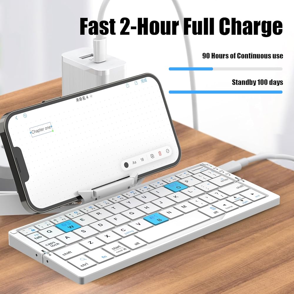 • 【لوحة مفاتيح قابلة للطي لاسلكية قابلة لإعادة الشحن بقدرة 160 مللي أمبير في الساعة】بطارية ليثيوم مدمجة قابلة لإعادة الشحن، توفر ساعتين من وقت الشحن ما يصل إلى 45 ساعة من الكتابة المستمرة أو ما يصل إلى 90 يومًا من وقت الانتظار. مع الشحن الكامل، يكفي لرحلة العمل القصيرة أو الإجازة. تتميز لوحة المفاتيح القابلة للطي أيضًا بوضع توفير الطاقة الذي يجعلك تنام بعد عشر دقائق من عدم النشاط ويوقظك بنقرة واحدة.