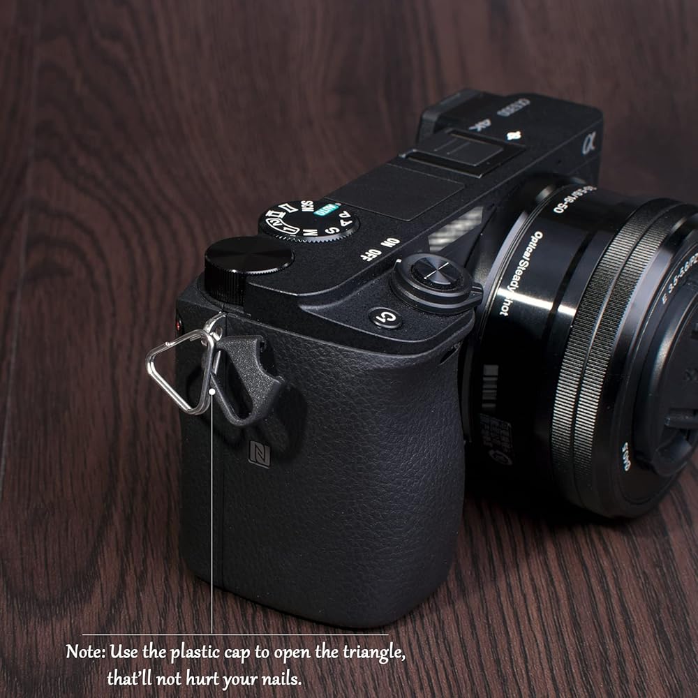 تم تصميم مجموعة مشبك الإغلاق سريع الفك VQR-1510II من في كيه او لمساعدتك على ربط حزام الرقبة بفتحة الكاميرا، وحلقة العروة مع غطاء واقي من مادة ABS لمنع الخدوش من الحلقة المعدنية.